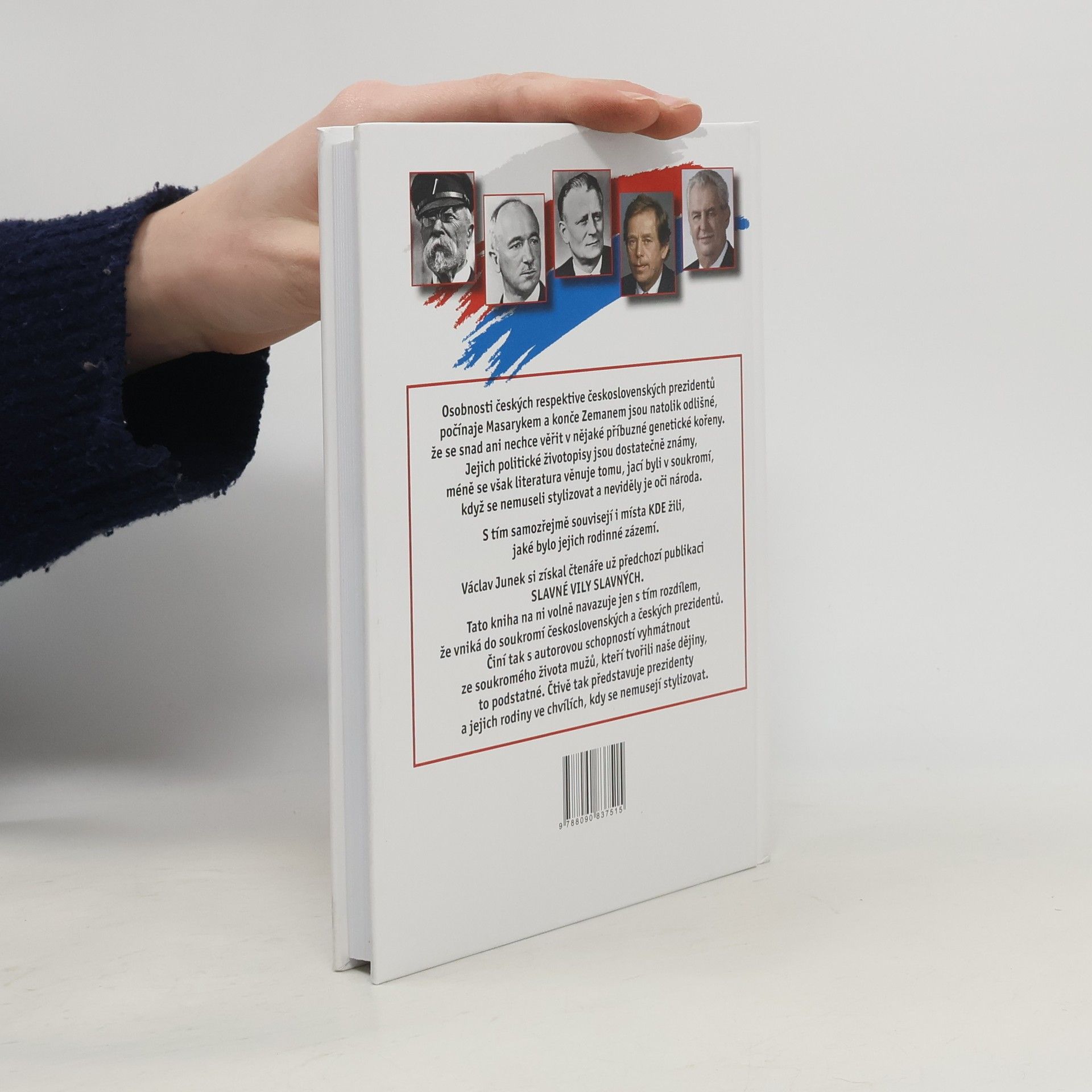 Osobnosti českých respektive československých prezidentů počínaje Masarykem a konče Zemanem jsou natolik odlišné, ze se snad ani nechce věřit v nějaké příbuzné genetické kořeny. Jejich politické životopisy jsou dostatečně známy, méně se však literatura věnuje tomu, jací byli v soukromí, když se nemuseli stylizovat a neviděly je oči národa. S tím samozřejmě souvisí i místa KDE žili, jaké bylo jejich rodinné zázemí. Václav Junek si získal čtenáře už předchozí publikaci Slavné vily slavných. Tato kniha na ni volně navazuje jen s tím rozdílem, ze vniká do soukromí československých a českých prezidentů. Činí tak s autorovu schopnosti vyhmátnout ze soukromého života mužů, kteří tvořili naše dějiny, to podstatné. Čtivě tak představuje prezidenty a jejich rodiny ve chvílích, kdy se nemusí stylizovat.