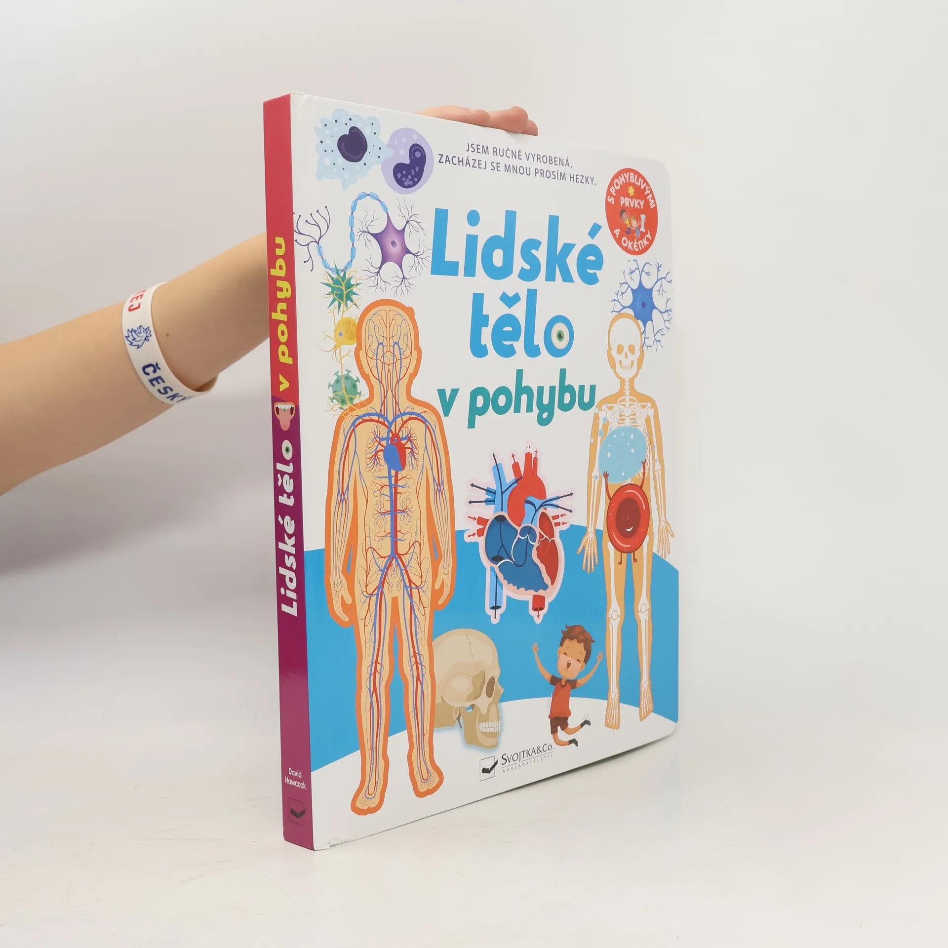 Jak dokážeme chodit? Díky čemu přemýšlíme, dýcháme a jíme? Jak se naše tělo dokáže bránit nemocem, jak roste a vyvíjí se? Díky propracovaným ilustracím a důmyslným pohyblivým prvkům ti tato kniha umožní nahlédnout do lidského těla a objasnit něco málo z jeho tajemství. Otvírej okénka, otáčej kolečky, vysouvej záložky a vydej se za poznáváním a objevováním úžasného lidského těla! Zjistíš, proč máš tak pevné kosti, co nepřetržitě řídí celé tvé tělo, jak a proč ti proudí krev, k čemu slouží svaly a co tě chrání před nemocemi a pomůže ti v případě, že se zraníš. Toto a mnoho dalšího se dozvíš, pokud se vydáš na velkolepou a fascinující výpravu do lidského těla! Kniha je ručně vyrobená a obsahuje 94 interaktivních pohyblivých prvků; aby pohyblivé prvky dlouho vydržely, je potřeba s knihou šetrně zacházet.