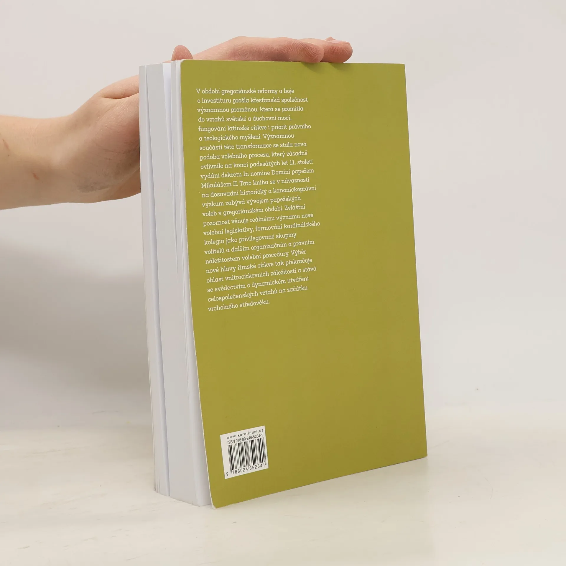 V období gregoriánské reformy a boje o investituru prošla křesťanská společnost významnou proměnou, která se promítla do vztahů světské a duchovní moci, fungování latinské církve i priorit právního a teologického myšlení. Významnou součástí této transformace se stala nová podoba volebního procesu, který zásadně ovlivnilo na konci padesátých let 11. století vydání dekretu In nomine Domini papežem Mikulášem II. Tato kniha se v návaznosti na dosavadní historický a kanonickoprávní výzkum zabývá vývojem papežských voleb v gregoriánském období. Zvláštní pozornost věnuje reálnému významu nové volební legislativy, formování kardinálského kolegia jako privilegované skupiny volitelů a dalším organizačním a právním náležitostem volební procedury. Výběr nové hlavy římské církve tak překračuje oblast vnitrocírkevních záležitostí a stává se svědectvím o dynamickém utváření celospolečenských vztahů na začátku vrcholného středověku.