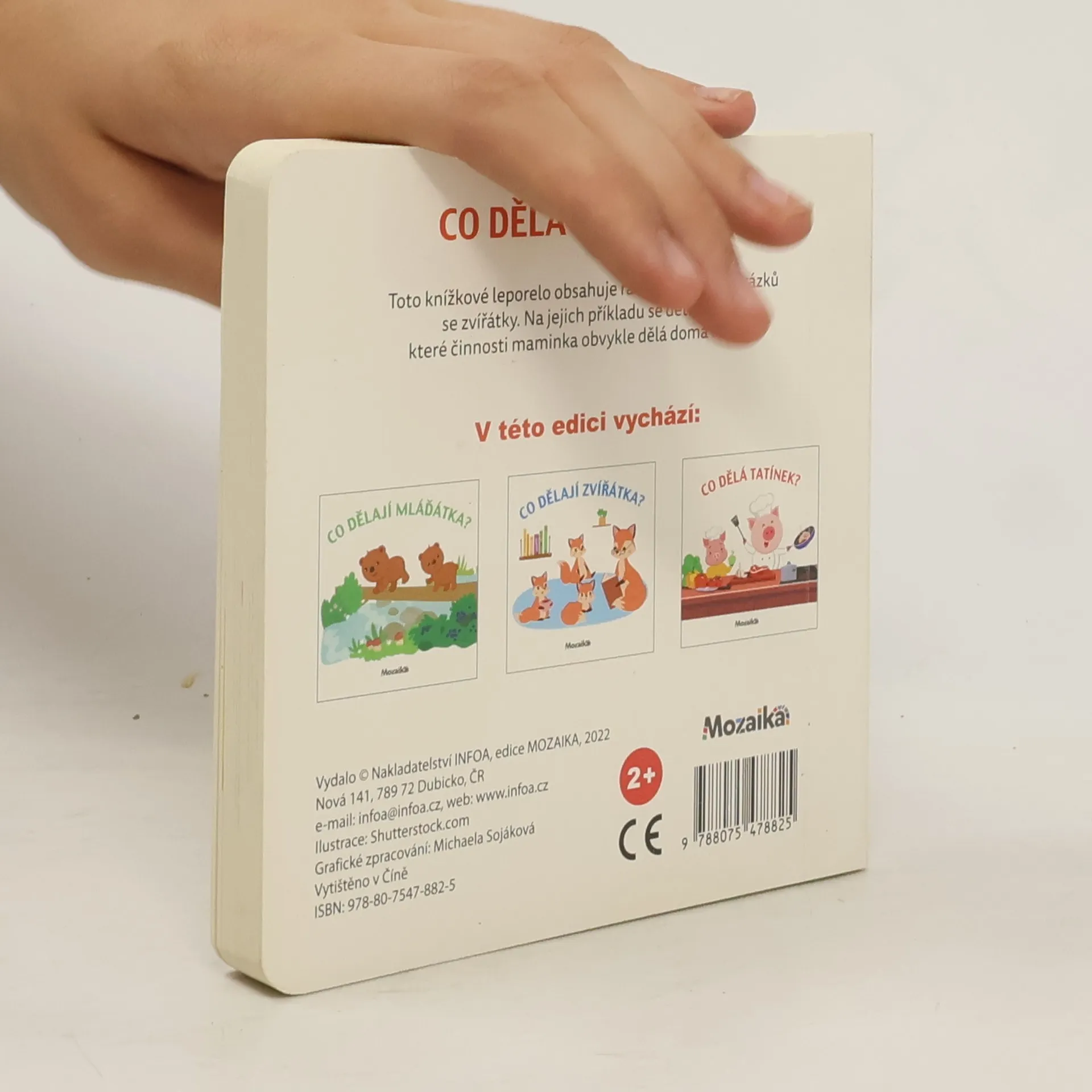 Toto knížkové leporelo obsahuje řadu poutavých obrázků se zvířátky. Na jejich příkladu se děti dozví, které činnosti maminka obvykle dělá doma i venku.