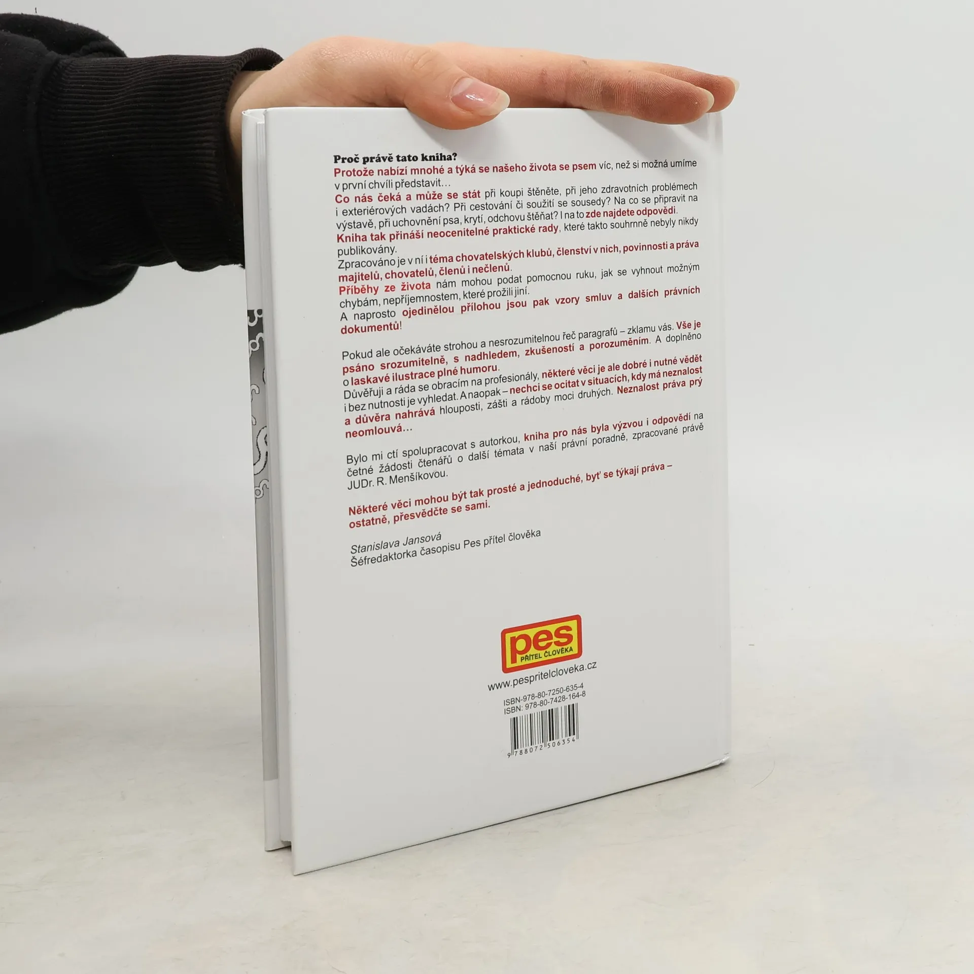 Co nás čeká a může se stát při koupi štěněte, při jeho zdravotních problémech i exteriérových vadách? Při cestování či soužití se sousedy? Na co se připravit na výstavě, při uchovnění psa, krytí, odchovu štěňat? I na to zde najdete odpovědi. Kniha tak přináší neocenitelné praktické rady, které takto souhrnně nebyly nikdy publikovány. Zpracováno je v ní i téma chovatelských klubů, členství v nich, povinnosti a práva majitelů, chovatelů, členů i nečlenů. Příběhy ze života nám mohou podat pomocnou ruku, jak se vyhnout možným chybám, nepříjemnostem, které prožili jiní. A naprosto ojedinělou přílohou jsou pak vzory smluv a dalších právních dokumentů! Nečekejte strohou a nesrozumitelnou řeč paragrafů – vše je psáno srozumitelně, s nadhledem, zkušeností a porozuměním, doplněno o laskavé ilustrace plné humoru.