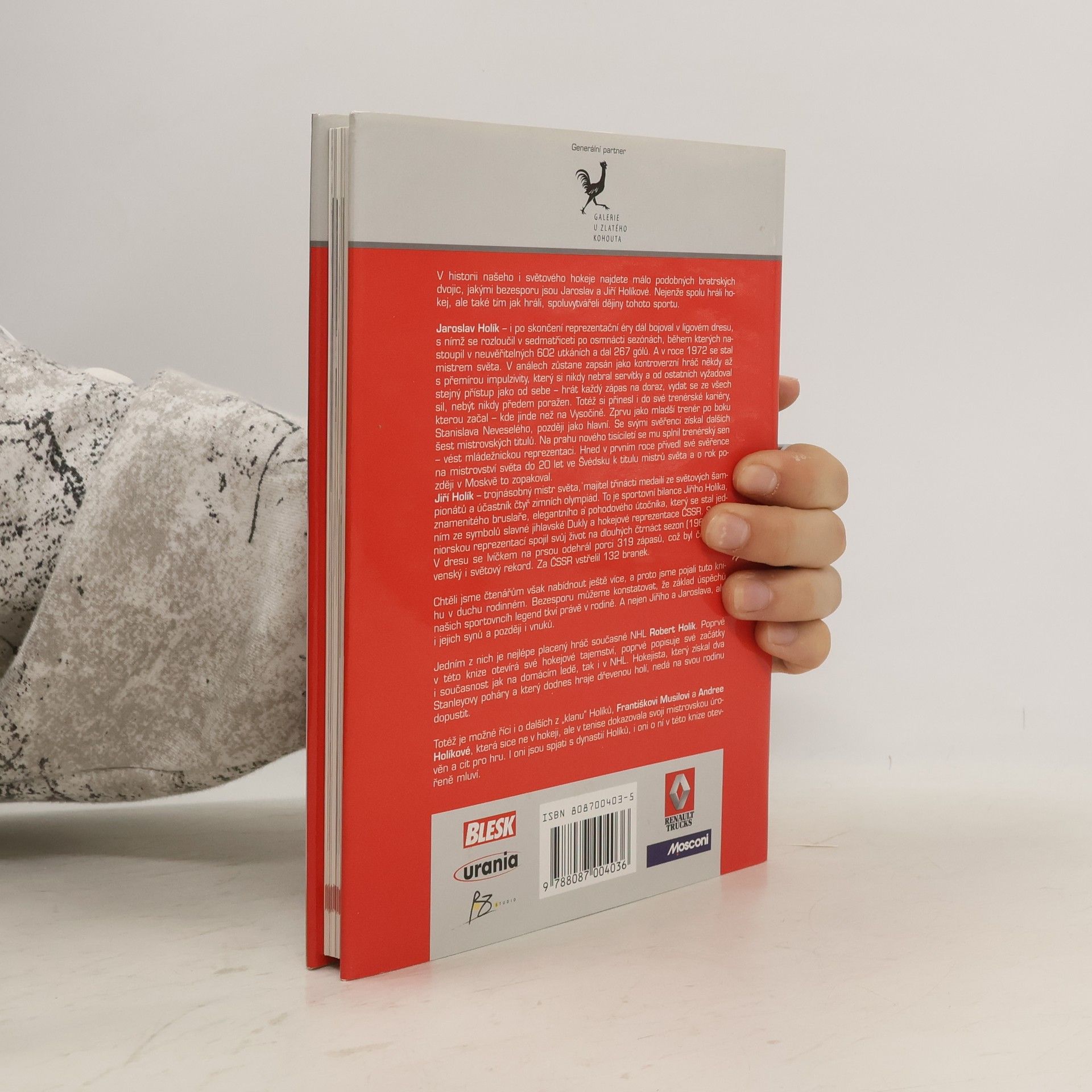 V historii našeho i světového hokeje najdete málo podobných bratrských dvojic - Holíkové spolu nejen hráli, oni dva spoluvytvářeli dějiny hokeje. Kromě zpovědí známé bratrské hokejové dvojice Jaroslava a Jiřího Holíků si vůbec poprvé přečtete výpovědi Roberta Holíka, Františka Musila a Andrey Holíkové - ti všichni patří do jejich dynastie. Kniha obsahuje: - výpovědi Jiřího Holíka, Jaroslava Holíka, Roberta Holíka, Andreji Holíkové, Františka Musila - výpovědi manželek a přátelů rodiny výpovědi slavných českých hokejistů, trenérů a kamarádů - faktografické údaje o hráčské i trenérské kariéře, setříděné v příloze - cca 80 barevných i černobílých fotografií vč. dříve nepublikovaných snímků jak z dětství, tak i hráčské a trenérské kariéry