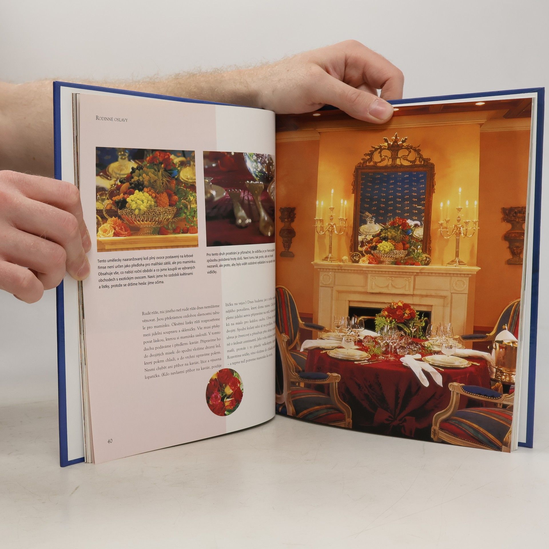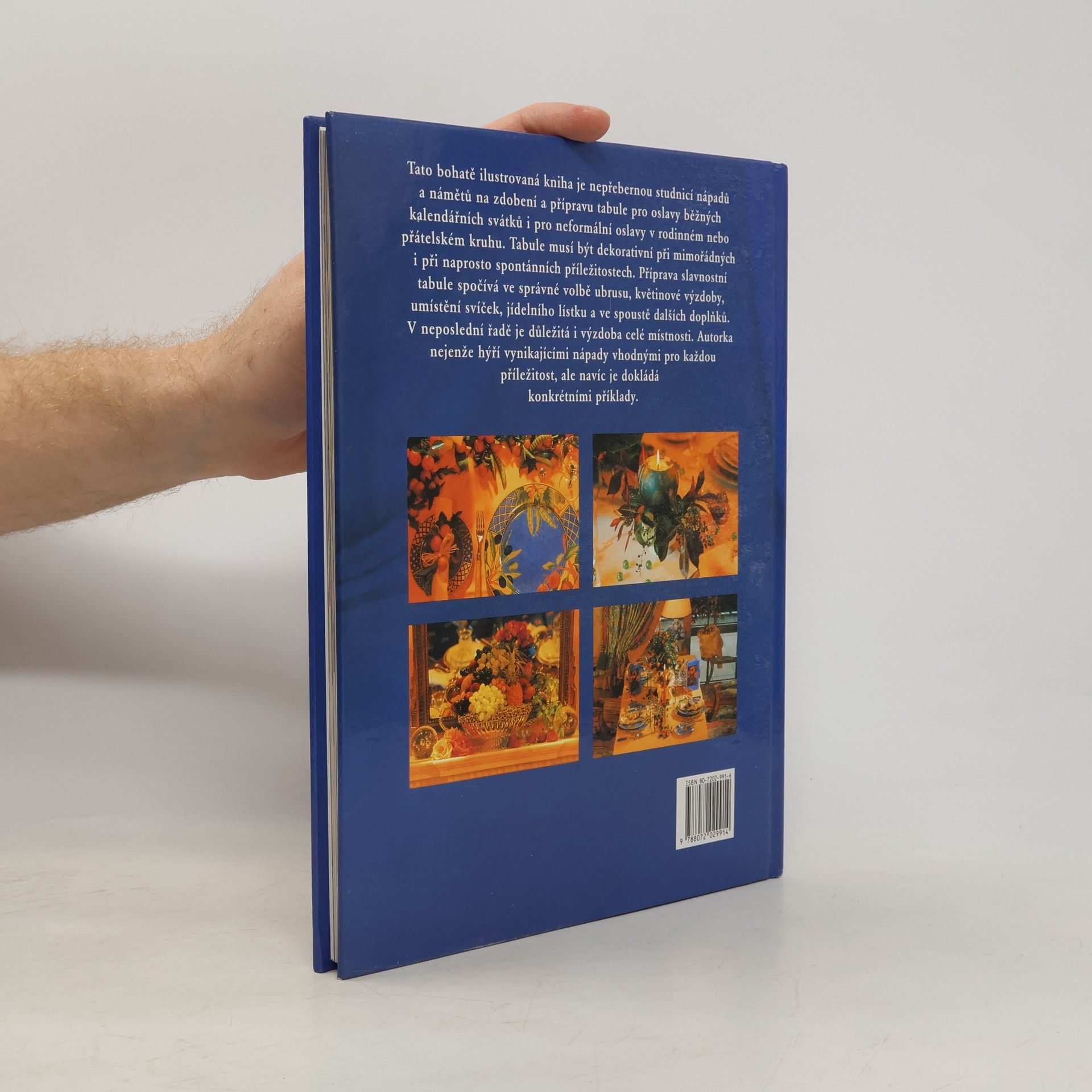 Tato bohatě ilustrovaná kniha je nepřebernou studnicí nápadů a námětů na zdobení a přípravu tabule pro oslavy běžných kalendářních svátků i pro neformální oslavy v rodinném nebo přátelském kruhu.Tabule musí být dekorativní při mimořádných i při naprosto spontánních příležitostech.Příprava slavnostní tabule spočívá ve správné volbě ubrusu,květinové výzdoby,umístění svíček,jídelního lístku a ve spoustě dalších doplňků.V neposlední řadě je důležitá i výzdoba i celé místnosti.Autorka nejenže hýří vynikajícími nápady vhodnými pro každou příležitost,ale navíc je dokládá konkrétními příklady.... celý text