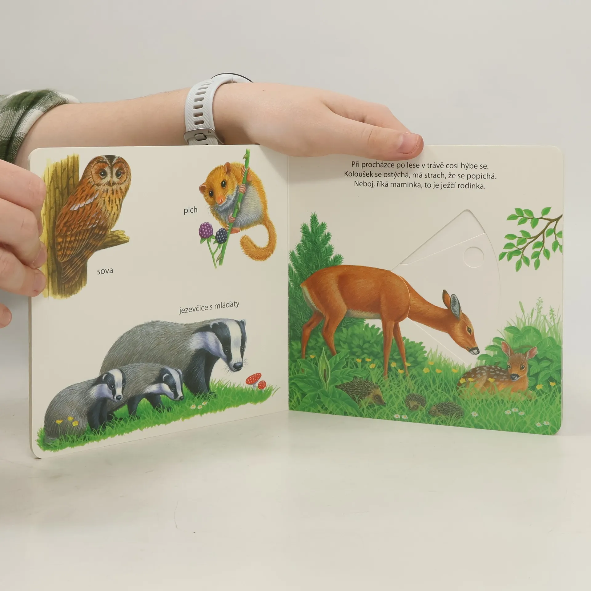 Veršované knížkové leporelo s veselými ilustracemi zvířátek. Děti mohou jednoduchými posuvnými mechanismy zvířátka rozpohybovat.