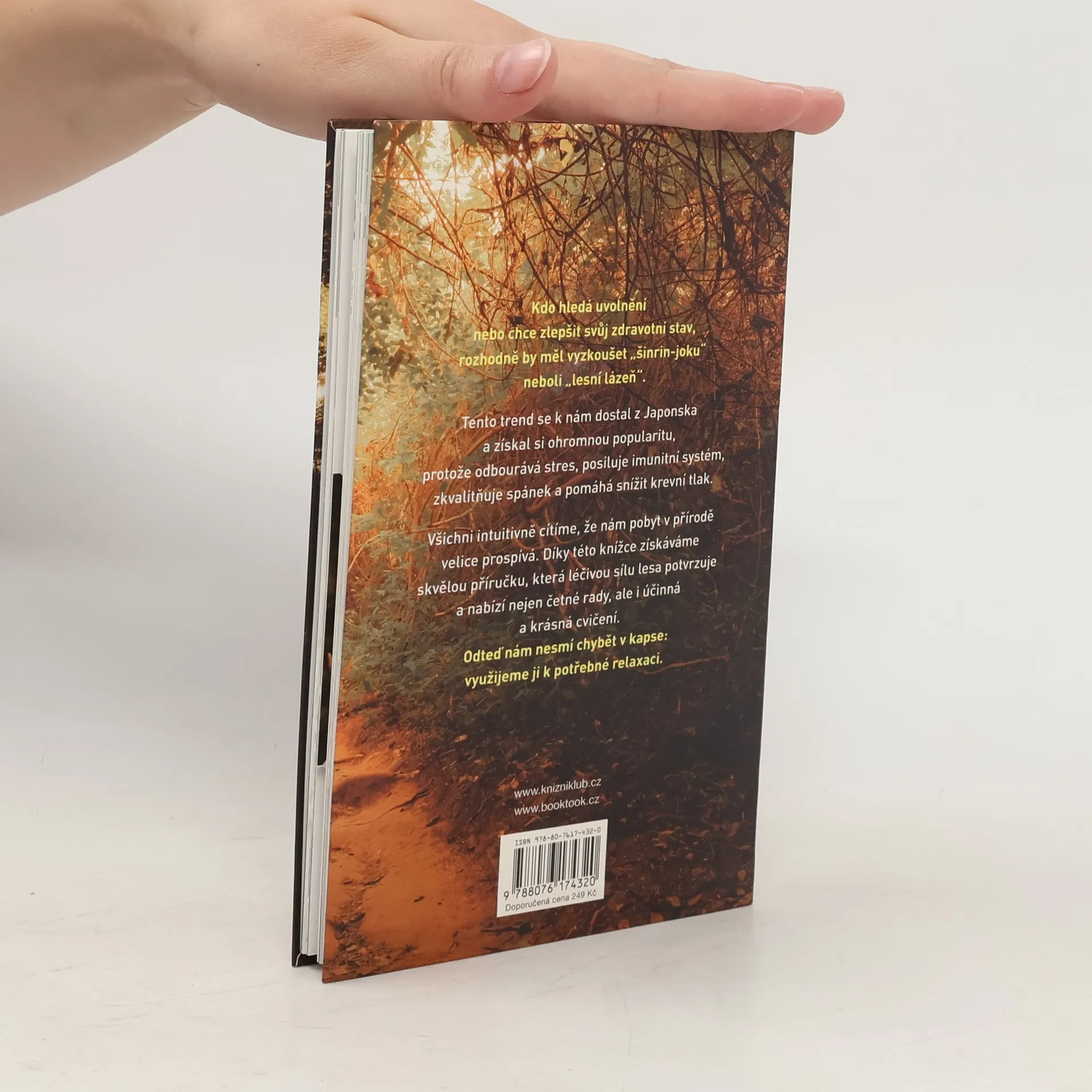 Kdo hledá uvolnění nebo chce zlepšit svůj zdravotní stav, rozhodně by si měl vyzkoušet „šinrin-joku“ neboli „lesní lázeň“. Tento trend se k nám dostal z Japonska a získal si ohromnou popularitu, protože odbourává stres, posiluje imunitní systém, zkvalitňuje spánek a pomáhá snížit krevní tlak. V této knížce získáváme skvělou příručku, kterou využijeme, kdykoli půjdeme do lesa.