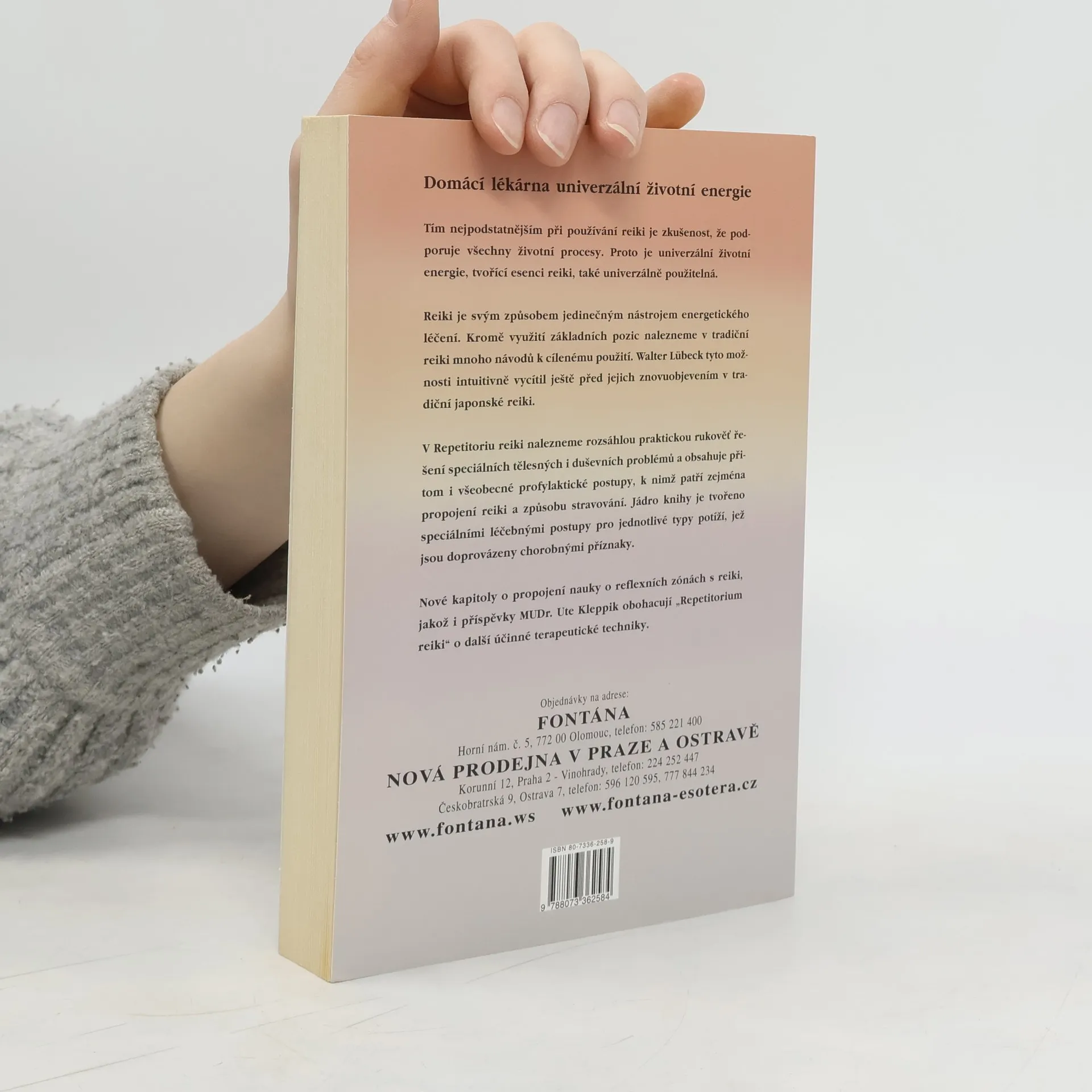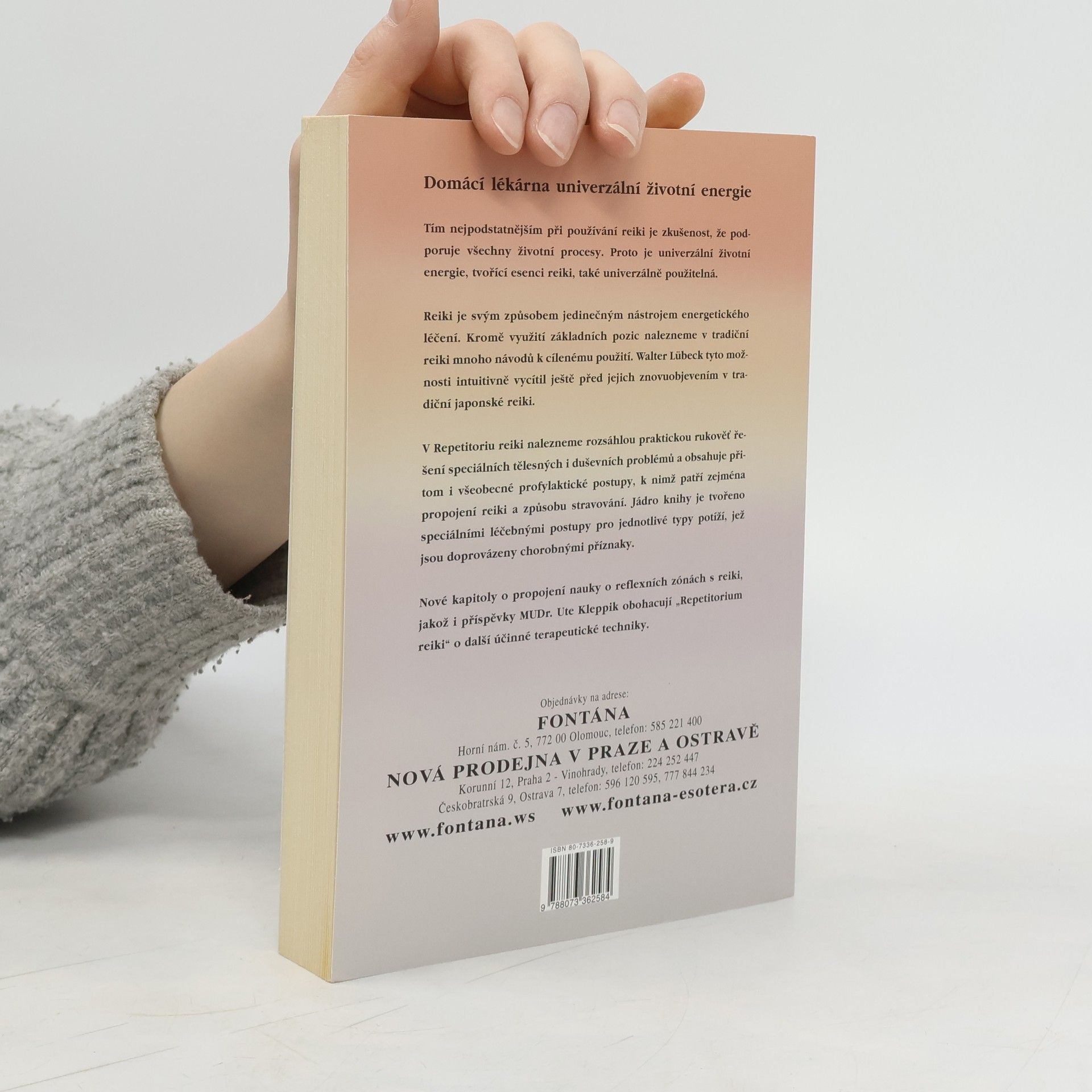 Domácí lékárna univerzální životní energie... Tím nejpodstatnějším při používání reiki je zkušenost, že podporuje všechny životní procesy. Proto je esence reiki také univerzálně použitelná. Reiki je svým způsobem jedinečným nástrojem energetického léčení. Kromě využití základních pozic lze v tradičním reiki nalézt mnoho návodů k cílenému použití. Walter Lübeck tyto možnosti intuitivně vycítil ještě před jejich znovuobjevením v tradičním japonském reiki. V tomto repetitoriu naleznete rozsáhlou praktickou rukověť řešení speciálních tělesných i duševních problémů, jakož i receptář všeobecných profylaktických postupů, k nimž patří zejména propojení reiki a stravy. Jádro knihy tvoří speciální léčebné postupy pro jednotlivé typy potíží, jež jsou doprovázeny chorobnými příznaky. Nové kapitoly o propojení nauky o reflexních zónách s reiki, jakož i příspěvky MUDr. Ute Kleppikové obohacují tuto obsažnou publikaci o další účinné terapeutické techniky.
