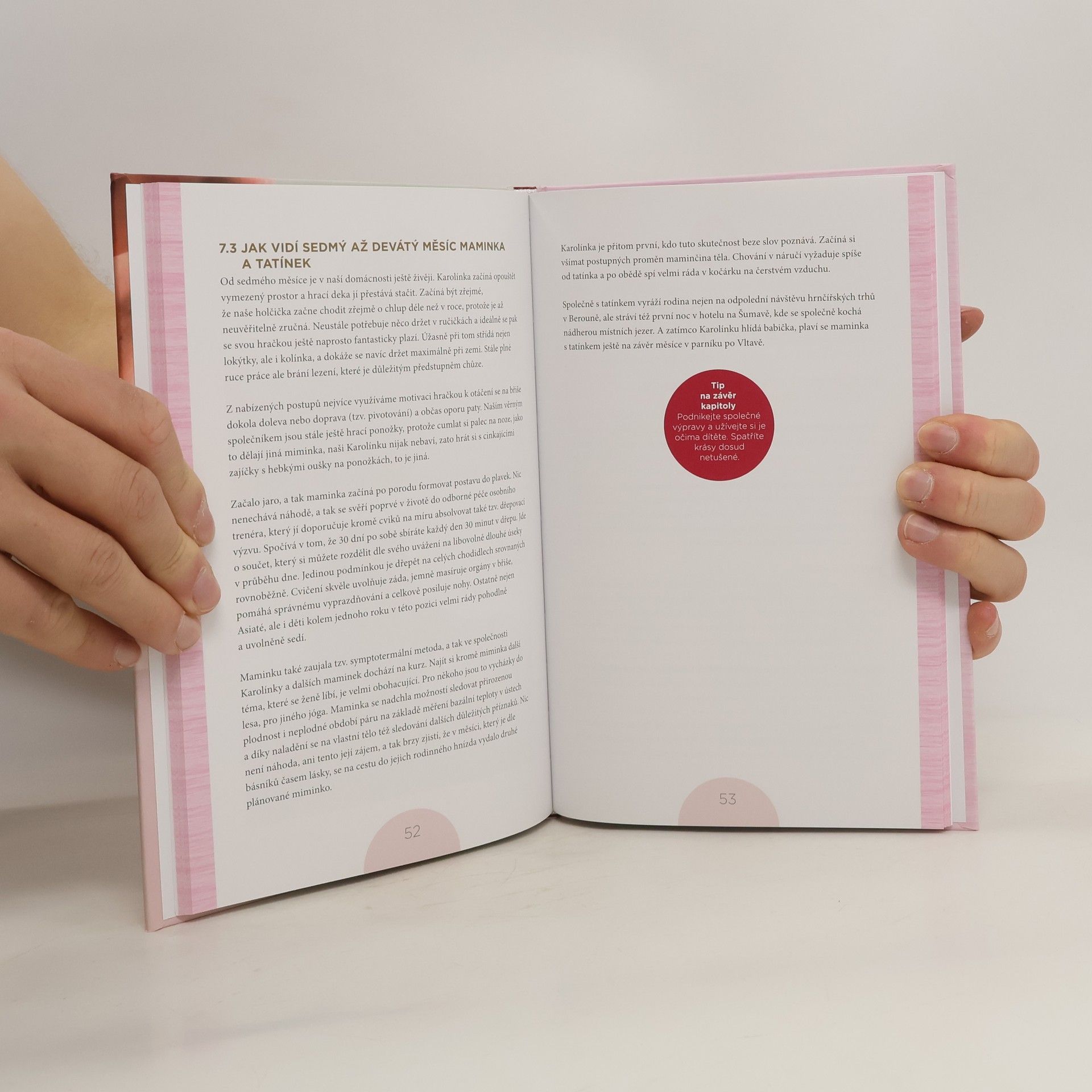 Rady pro rodiče, jak dobře zvládnout pohybový vývoj dítěte od narození do jednoho roku Odložte na chvíli knihu a podívejte se na své ruce. Něžně, klidně a pevně obejměte své miminko. Nikdo vaše dlaně umění dotyku neučil, přesto přesně ví, co mají dělat. Nejlepší knihou o vašem miminku je a vždy bude vaše miminko samo. Žádná sebelepší publikace nemůže nahradit signály, které vám vaše děťátko od narození vysílá. Naslouchejte mu a naučte se jeho signály správně číst. Váš úkol je jediný - milovat své dítě a vytvářet takové prostředí, které mu pomůže v jeho přirozeném vývoji, nikoliv naopak. Tato kniha si klade za cíl inspirovat vás k tomu, abyste si se svým děťátkem v jednotlivých fázích vývoje přirozeně hráli. Každé dítě je od narození osobnost, a proto nemůžeme očekávat, že se všechny děti budou v daném období pohybovat stejně. Nejdůležitější ale je žádnou fázi vývoje nepřeskočit.