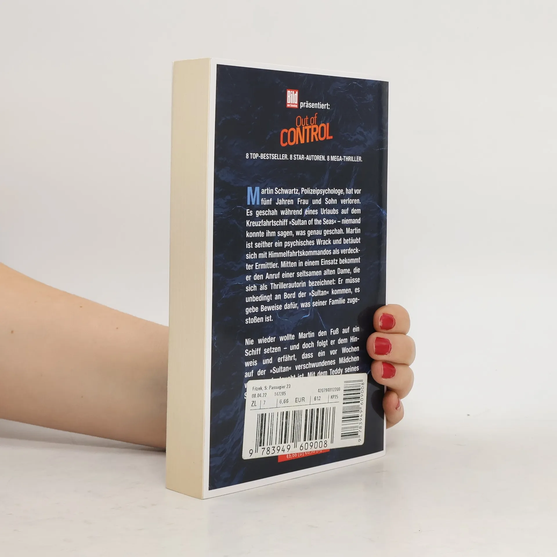 Martin Schwartz, Polizeipsychologe, hat vor fünf Jahren Frau und Sohn verloren. Es geschah während eines Urlaubs auf dem Kreuzfahrtschiff „Sultan of the Seas“ – niemand konnte ihm sagen, was genau geschah. Martin ist seither ein psychisches Wrack und betäubt sich mit Himmelfahrtskommandos als verdeckter Ermittler. Mitten in einem Einsatz bekommt er den Anruf einer seltsamen alten Dame, die sich als Thrillerautorin bezeichnet: Er müsse unbedingt an Bord der „Sultan“ kommen, es gebe Beweise dafür, was seiner Familie zugestoßen ist. Nie wieder wollte Martin den Fuß auf ein Schiff setzen – und doch folgt er dem Hinweis und erfährt, dass ein vor Wochen auf der „Sultan“ verschwundenes Mädchen wieder aufgetaucht ist. Mit dem Teddy seines Sohnes im Arm.