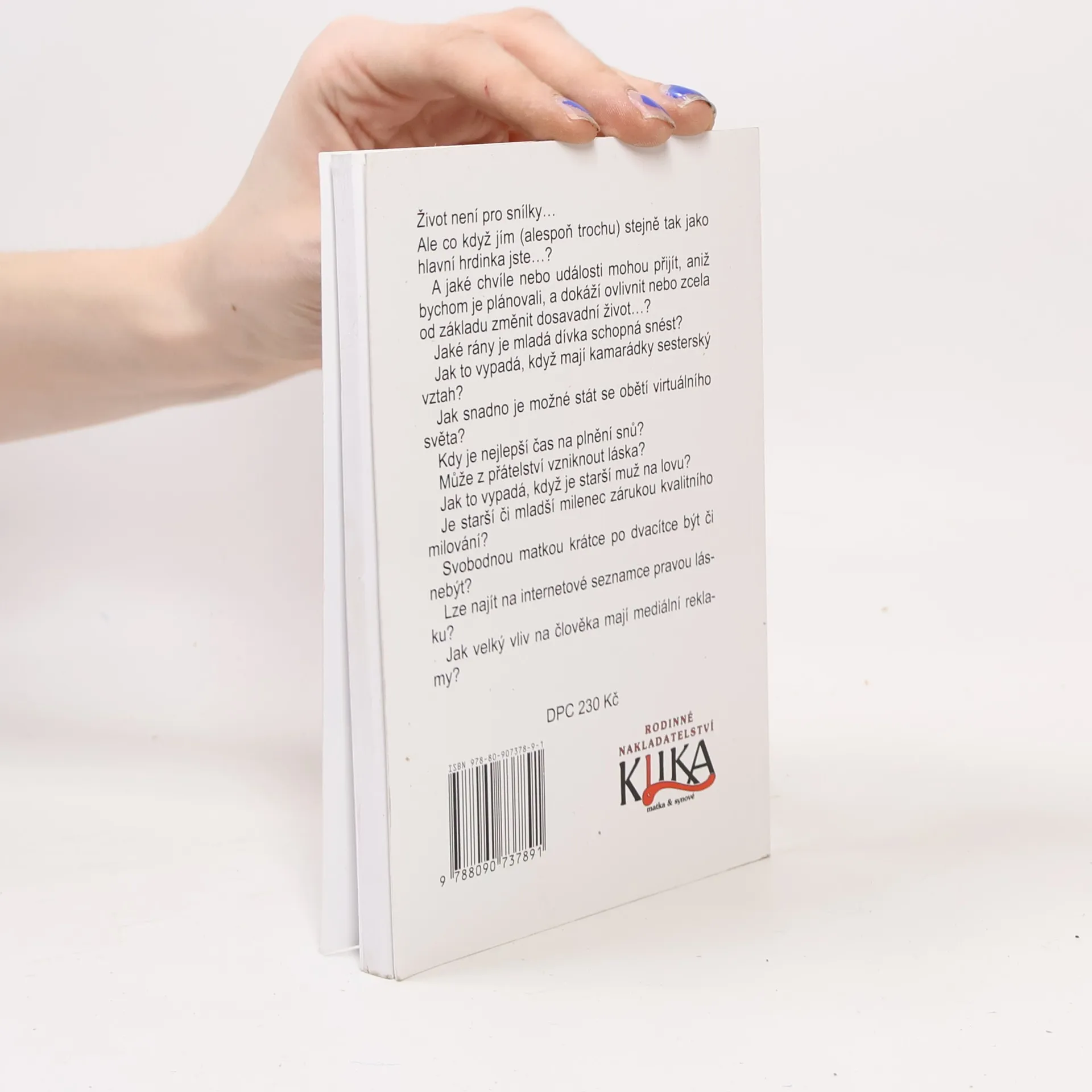 Život není pro snílky… Ale co když jím (alespoň trochu) stejně tak jako hlavní hrdinka jste…? A jaké chvíle nebo události mohou přijít, aniž bychom je plánovali, a dokáží ovlivnit nebo zcela od základu změnit náš dosavadní život…? Jaké rány je mladá dívka schopná snést? Jak to vypadá, když mají kamarádky sesterský vztah? Jak snadno je možné stát se obětí virtuálního světa? Kdy je nejlepší čas na plnění snů? Může z přátelství vzniknout láska? Jak to vypadá, když je starší muž na lovu? Je starší či mladší milenec zárukou kvalitního milování? Svobodnou matkou krátce po dvacítce být či nebýt? Lze najít na internetové seznamce pravou lásku? Jak velký vliv na člověka mají mediální reklamy?