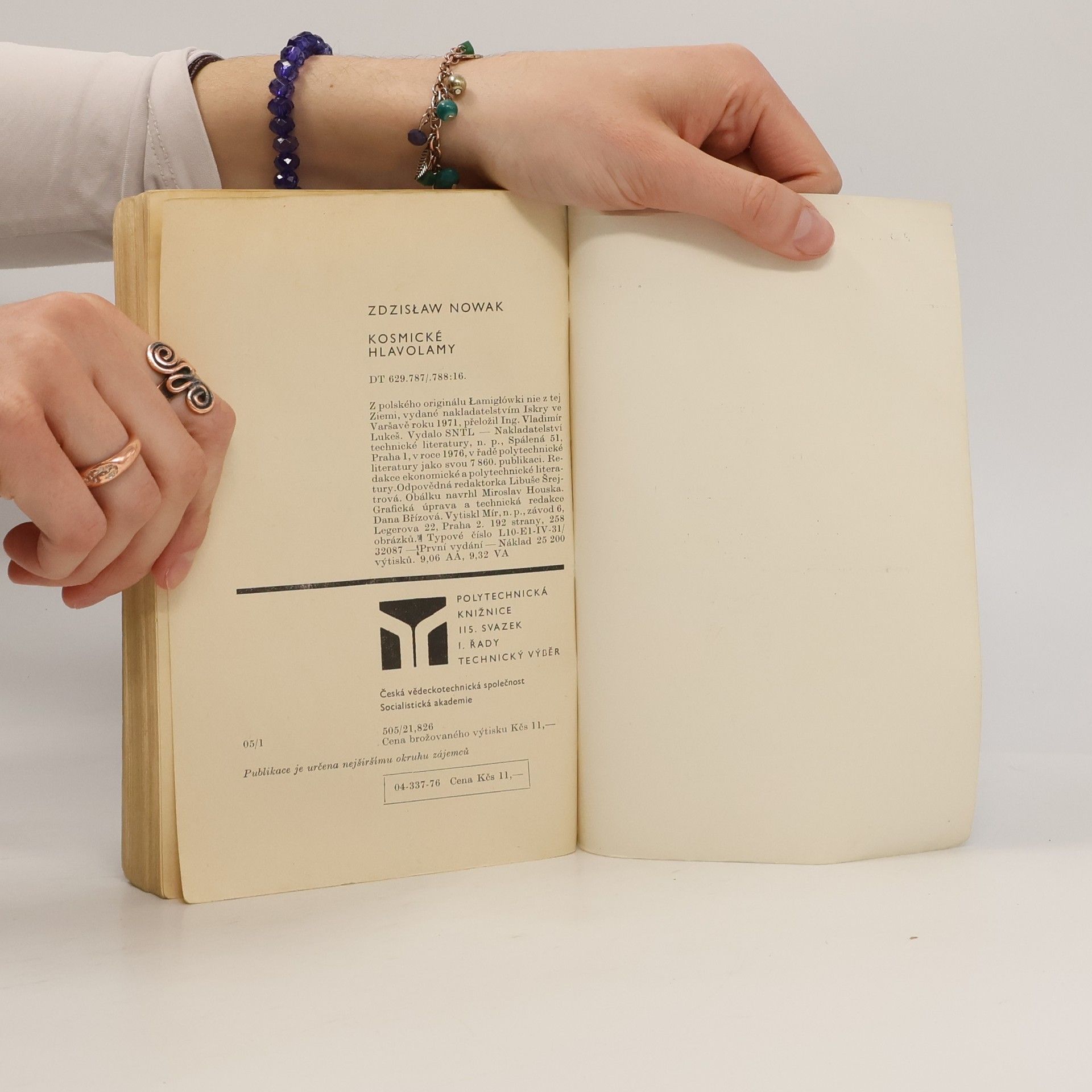 Kdo z nás si v duchu nepoložil otázku, zda by mohl být kosmonautem? V knize je popsáno, které vlastnosti a schopnosti musí mít člověk, aby si byl schopen poradit se situacemi, které nebylo na Zemi možné předvídat. U každé kapitoly jsou uvedeny úkoly a cvičení, které vycházejí z těch, jež se skutečně používají při zkoumání způsobilosti kandidátů pro kosmické lety. Z polského originálu „Łamigłówki nie z tej Ziemi“, vydaného nakladatelstvím „Iskry“ ve Varšavě roku 1971, přeložil Ing. Vladimír Lukeš. Překlad revidovali RNDr. Jiří Mrázek, CSc., Dr. Zdeněk Zizius a Ing. Zdeněk Tichý. 192 stran, 158 obrázků. První vydání.