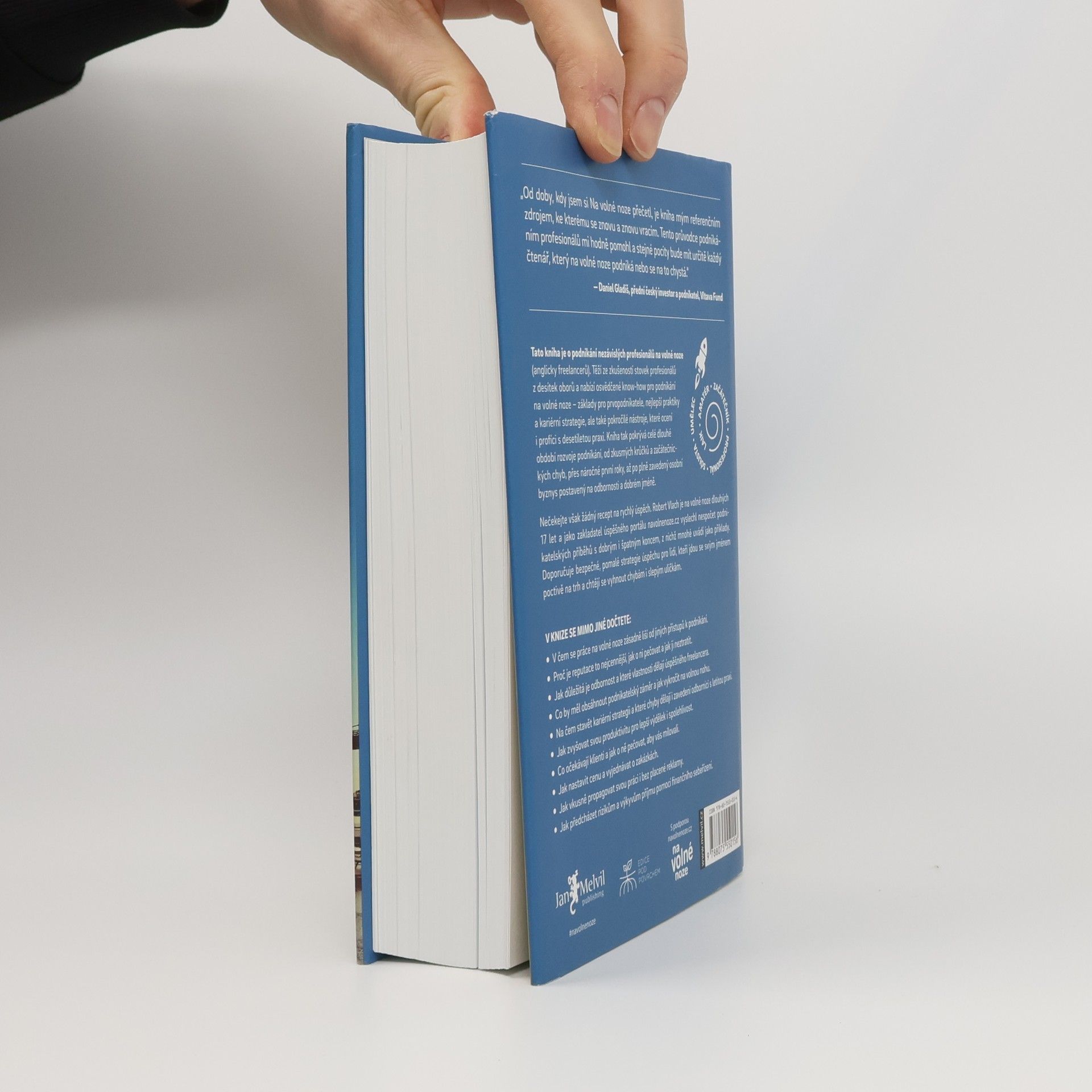 První kniha v češtině o podnikání nezávislých profesionálů těží ze zkušeností mnoha set českých freelancerů z desítek oborů. Nabízí osvědčené postupy a know-how pro podnikání na volné noze: základy pro prvopodnikatele, nejlepší praktiky a kariérní strategie, ale také pokročilé nástroje, které ocení i profíci s více než desetiletou podnikatelskou praxí. Kniha tak pokrývá celé dlouhé období rozvoje podnikání, od zkusmých krůčků a začátečnických chyb, přes náročné první roky, až po plně zavedený osobní byznys postavený na odbornosti a dobrém jméně (s překvapivou pointou na závěr).