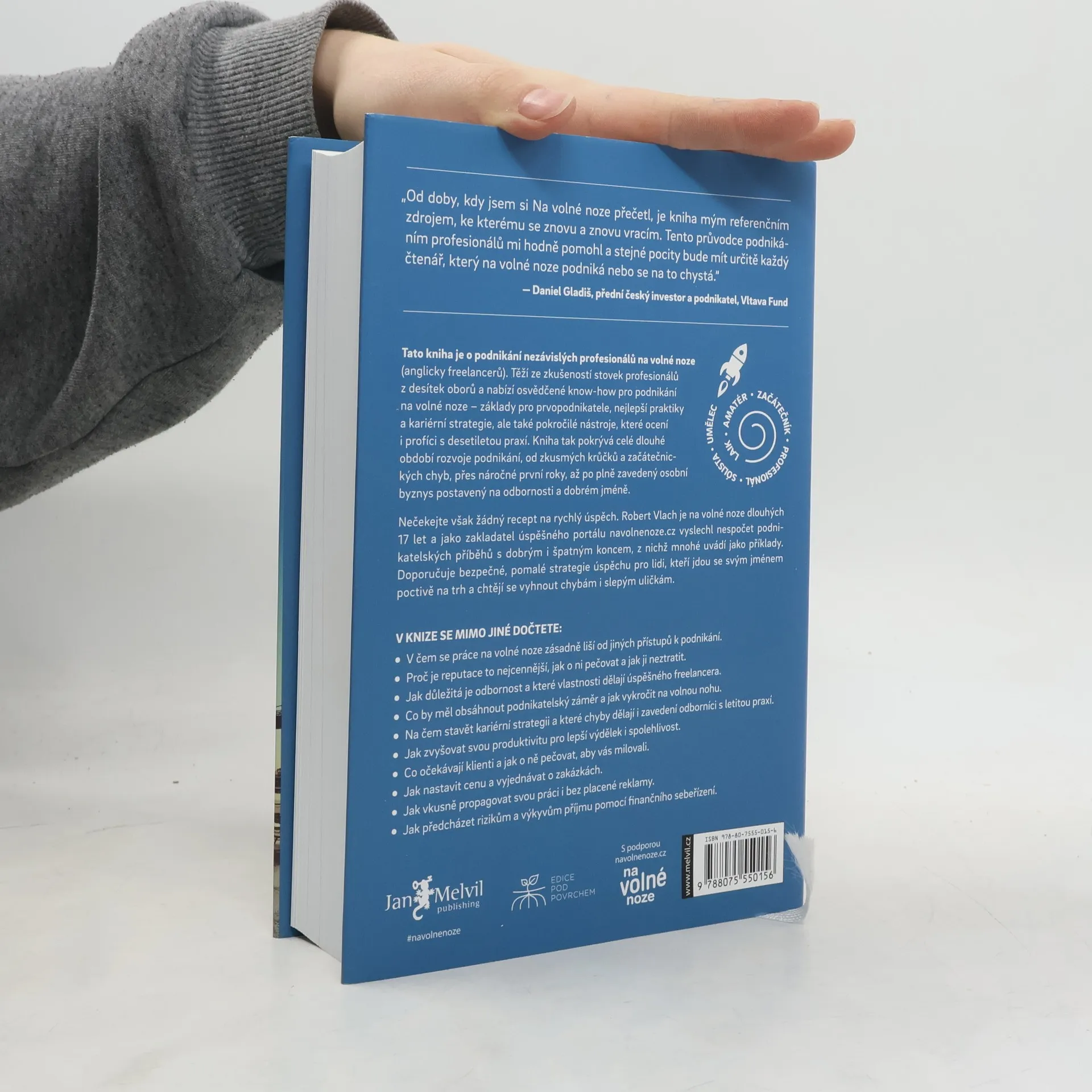 První kniha v češtině o podnikání nezávislých profesionálů těží ze zkušeností mnoha set českých freelancerů z desítek oborů. Nabízí osvědčené postupy a know-how pro podnikání na volné noze: základy pro prvopodnikatele, nejlepší praktiky a kariérní strategie, ale také pokročilé nástroje, které ocení i profíci s více než desetiletou podnikatelskou praxí. Kniha tak pokrývá celé dlouhé období rozvoje podnikání, od zkusmých krůčků a začátečnických chyb, přes náročné první roky, až po plně zavedený osobní byznys postavený na odbornosti a dobrém jméně (s překvapivou pointou na závěr).