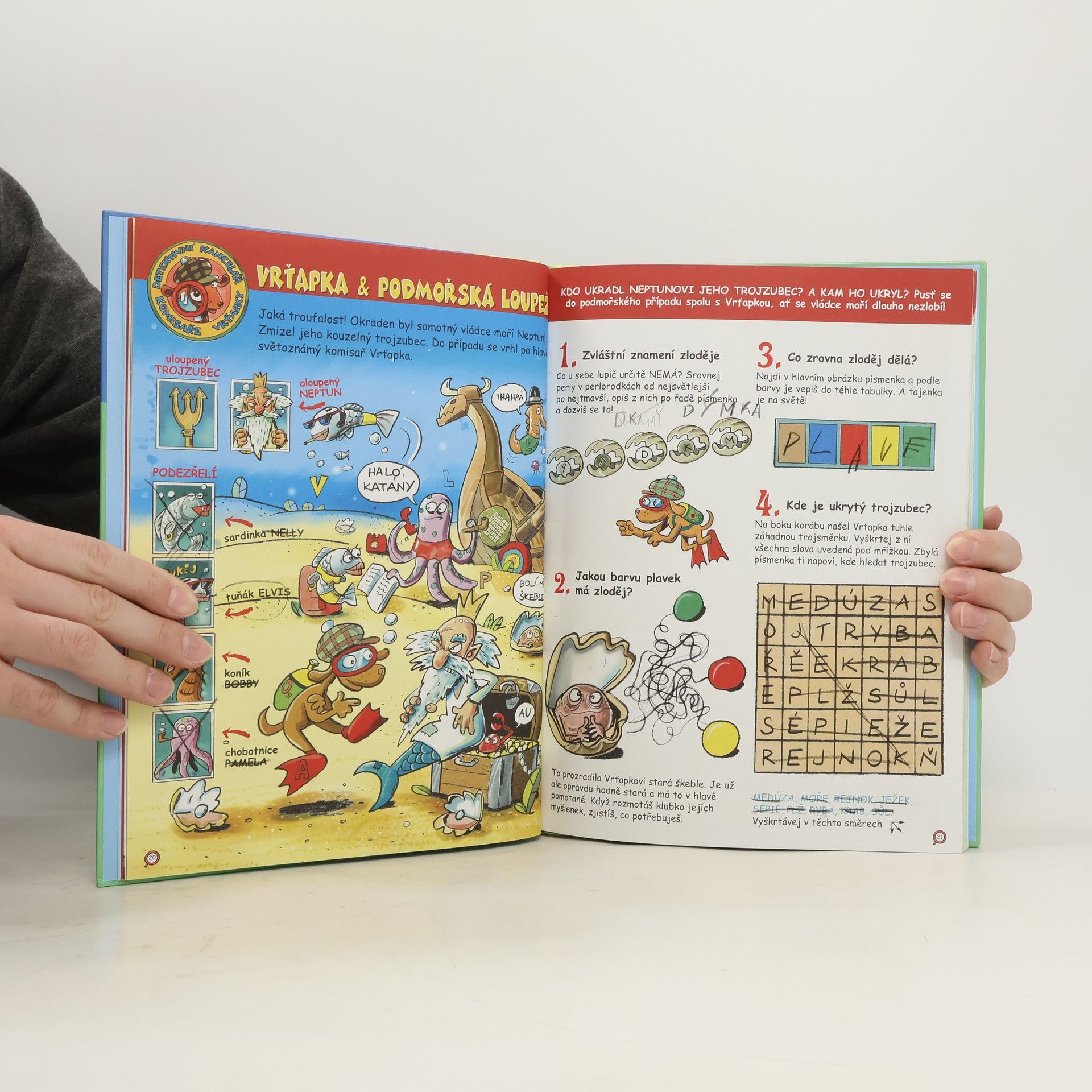 Jednička mezi psími detektivy – komisař Vrťapka, je postrachem všech padouchů a lapků. Vyřešil již řadu těch nejzapeklitějších detektivních případů a jeho sláva jej přivedla až na stránky dětského časopisu Mateřídouška. Dnes již legendární první díl ze série Vrťapkových sebraných spisů nesmí chybět v žádné dětské knihovně. V bohatě ilustrované knize čtenáři naleznou několik desítek jeho případů, ale odhalit pachatele musejí sami na základě důmyslných indicií. Mladí detektivové se tak prostřednictvím humorných komiksů a ilustrací procvičí v úsudku i kombinačních dovednostech. Tak vzhůru za případy, ať nám nevychladne stopa!