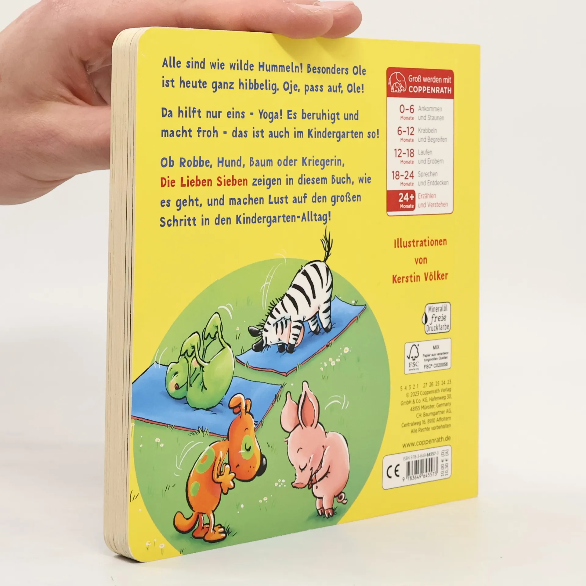 Alle sind wie wilde Hummeln! Besonders Ole ist heute ganz hibbelig. Oje, pass auf, Ole! Da hilft nur eins – Yoga! Es beruhigt und macht froh - das ist auch im Kindergarten so! Ob Robbe, Hund, Baum oder Kriegerin. Die Lieben Sieben zeigen in diesem Buch, wie es geht, und machen Lust auf den großen Schritt in den Kindergarten-Alltag!