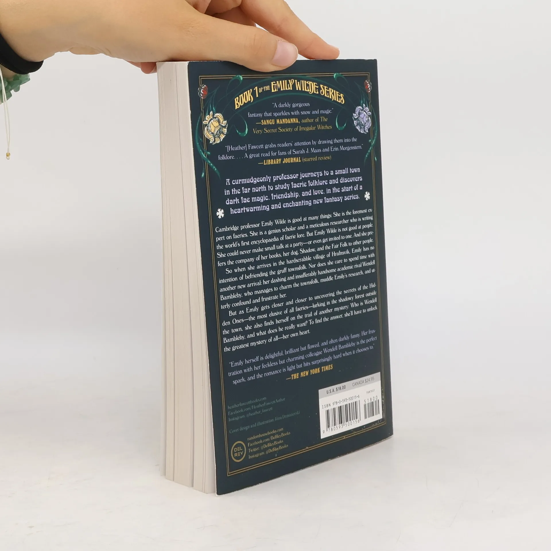 A curmudgeonly professor journeys to a small town in the far north to study faerie folklore and discovers dark fae magic, friendship, and love in the start of a heartwarming and enchanting new fantasy series.Cambridge professor Emily Wilde is good at many things: She is the foremost expert on the study of faeries. She is a genius scholar and a meticulous researcher who is writing the world's first encyclopaedia of faerie lore. But Emily Wilde is not good at people. She could never make small talk at a party--or even get invited to one. And she prefers the company of her books, her dog, and the Fair Folk.So when she arrives in the hardscrabble village of Hrafnsvik, Emily has no intention of befriending the gruff townsfolk. Nor does she care to spend time with another new arrival: her dashing and insufferably handsome academic rival Wendell Bambleby, who manages to charm the townsfolk, get in the middle of Emily's research, and utterly confound and frustrate her.But as Emily gets closer and closer to uncovering the secrets of the Hidden Ones--the most elusive of all faeries--lurking in the shadowy forest outside the town, she also finds herself on the trail of another mystery: Who is Wendell Bambleby, and what does he really want? To find the answer, she'll have to unlock the greatest mystery of all--her own heart.