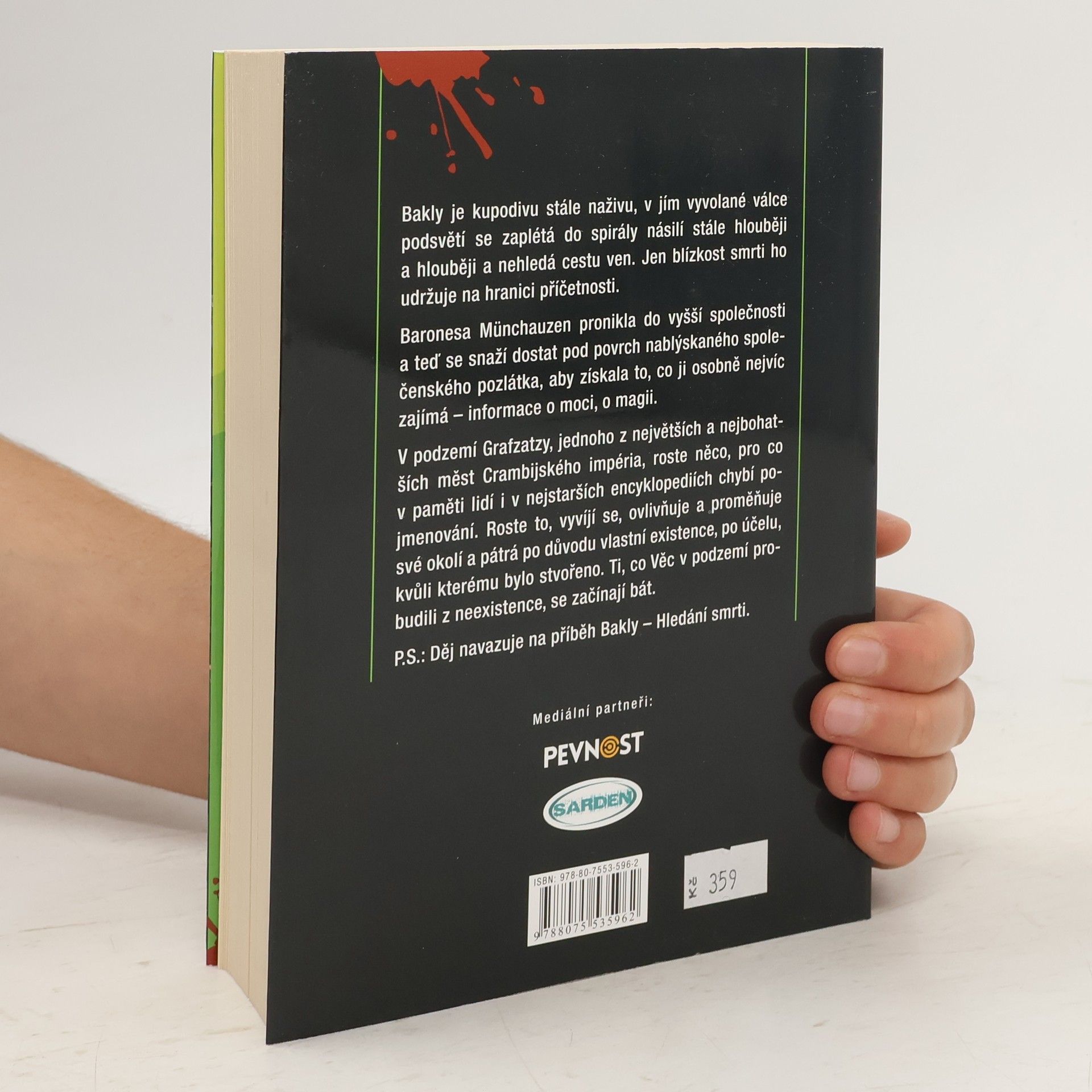 Bakly je kupodivu stále naživu, v jím vyvolané válce podsvětí se zaplétá do spirály násilí stále hlouběji a hlouběji a nehledá cestu ven. Jen blízkost smrti ho udržuje na hranici příčetnosti. Baronesa Münchauzen pronikla do vyšší společnosti a teď se snaží dostat pod povrch nablýskaného společenského pozlátka, aby získala to, co ji osobně nejvíc zajímá – informace o moci, o magii. V podzemí Grafzatzy, jednoho z největších a nejbohatších měst Crambijského impéria, roste něco, pro co v paměti lidí i v nejstarších encyklopediích chybí pojmenování. Roste to, vyvíjí se, ovlivňuje a proměňuje své okolí a pátrá po důvodu vlastní existence, po účelu, kvůli kterému bylo stvořeno. Ti, co Věc v podzemí probudili z neexistence, se začínají bát. P.S.: Děj navazuje na příběh Bakly - Hledání smrti.