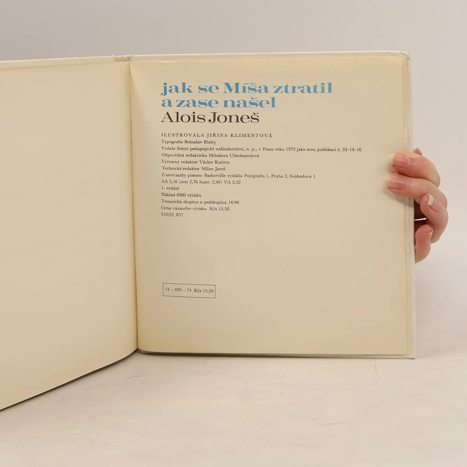 Jak se Míša ztratil a zase našel, Alois Joneš, Jiřina Klimentová