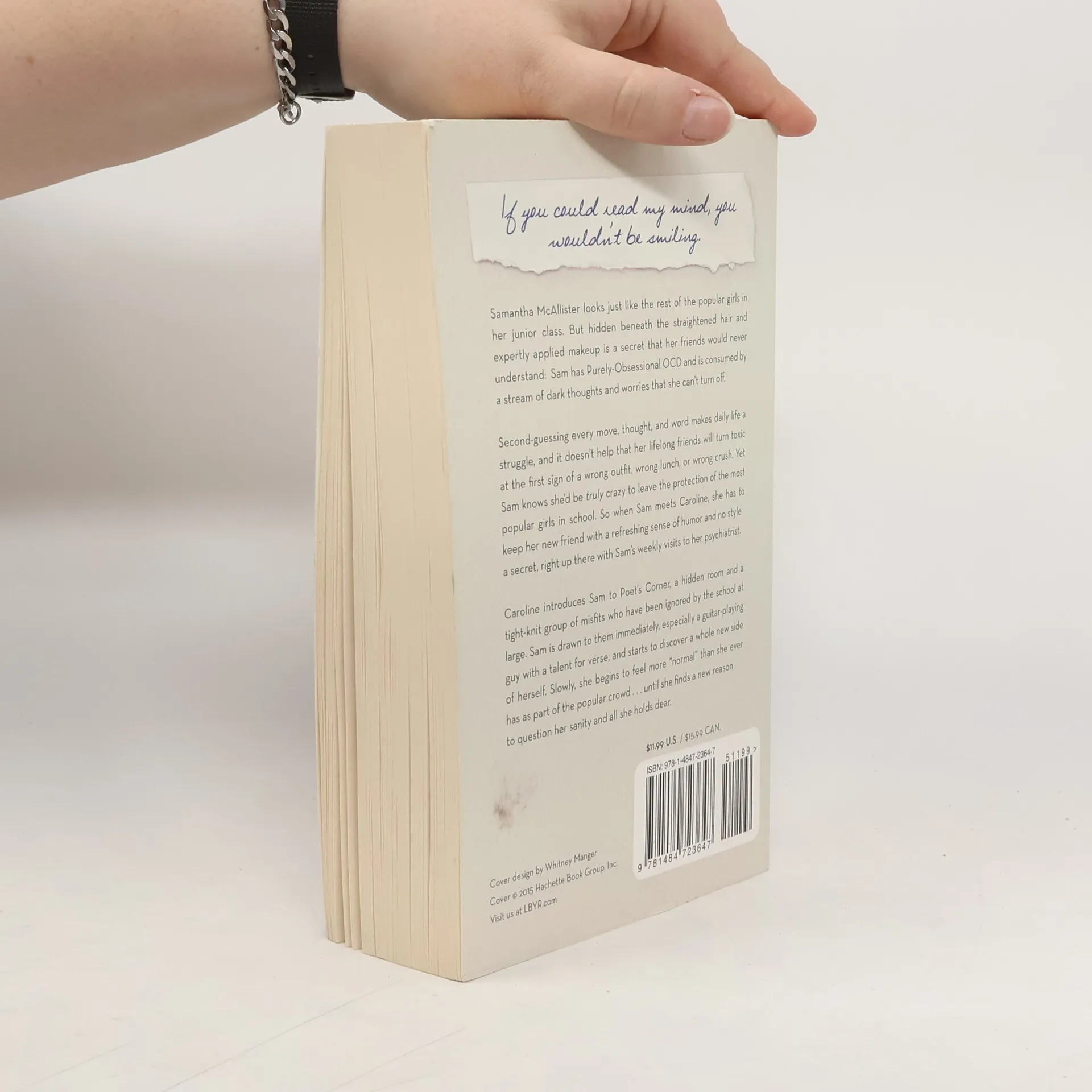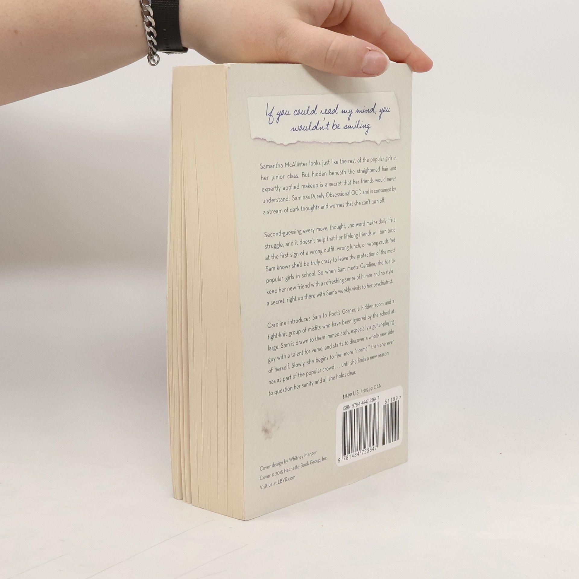"Samantha McAllister looks just like the rest of the popular girls in her junior class. But hidden beneath the straightened hair and expertly applied makeup is a secret that her friends would never understand: Sam has Purely-Obsessional OCD and is consumed by a stream of dark thoughts and worries that she can't turn off. Second-guessing every move, thought, and word makes daily life a struggle, and it doesn't help that her lifelong friends will turn toxic at the first sign of a wrong outfit, wrong lunch, or wrong crush. Yet Sam knows she'd be truly crazy to leave the protection of the most popular girls in school. So when Sam meets Caroline, she has to keep her new friend with a refreshing sense of humor and no style a secret, right up there with Sam's weekly visits to her psychiatrist. Caroline introduces Sam to Poet's Corner, a hidden room and a tight-knit group of misfits who have been ignored by the school at large. Sam is drawn to them immediately, especially a guitar-playing guy with a talent for verse, and starts to discover a whole new side of herself. Slowly, she begins to feel more "normal" than she ever has as part of the popular crowd ... until she finds a new reason to question her sanity and all she holds dear."--Cover
