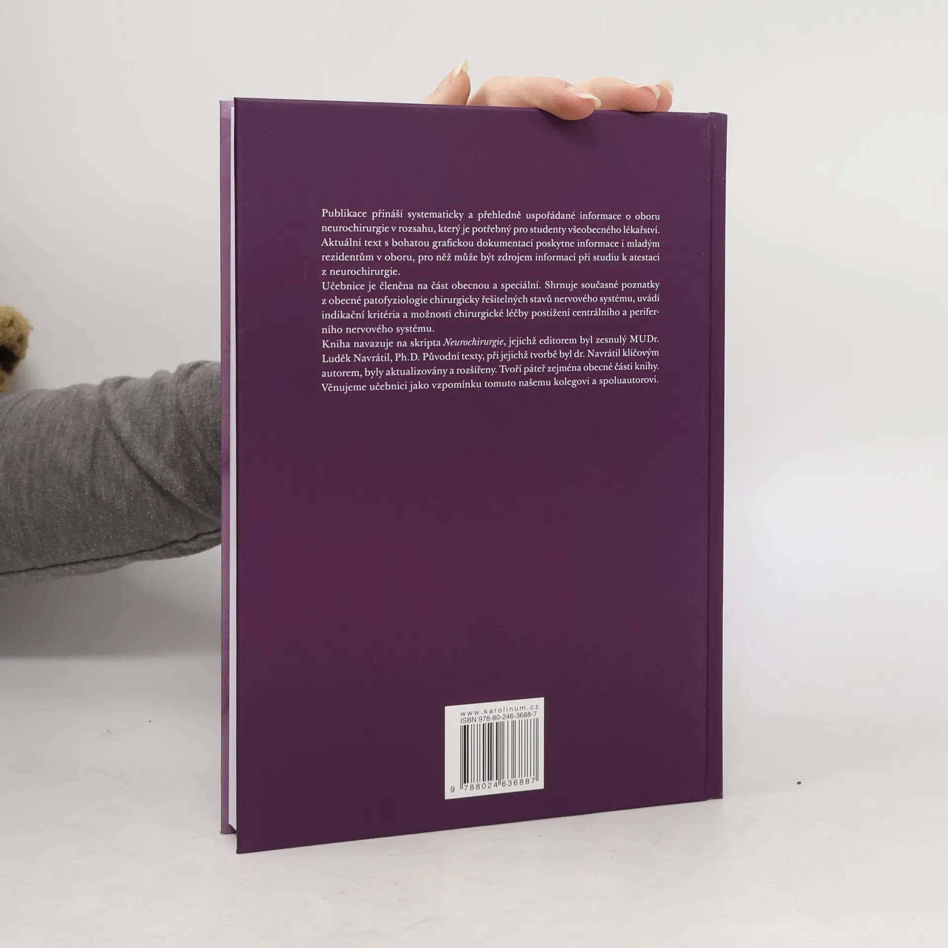 Učebnice je základním materiálem pro výuku oboru na lékařských fakultách. Společně s přednáškami a praktickými cvičeními tvoří souhrn informací pro přípravu na zkoušku z neurochirurgie. Aktuální text s bohatou grafickou dokumentací poskytne informace i mladým rezidentům v oboru, pro něž může být zdrojem informací při studiu k atestaci z neurochirurgie. Kniha je členěna na část obecnou a speciální. V obecné části byl kladen důraz na neurologicko- neurochirurgickou propedeutiku, zejména na klinické vyšetření pacienta. Ve speciální části upozorňujeme na začlenění nové klasifikace CNS tumorů z roku 2021 a na moderní trendy v terapii cévních onemocnění mozku.