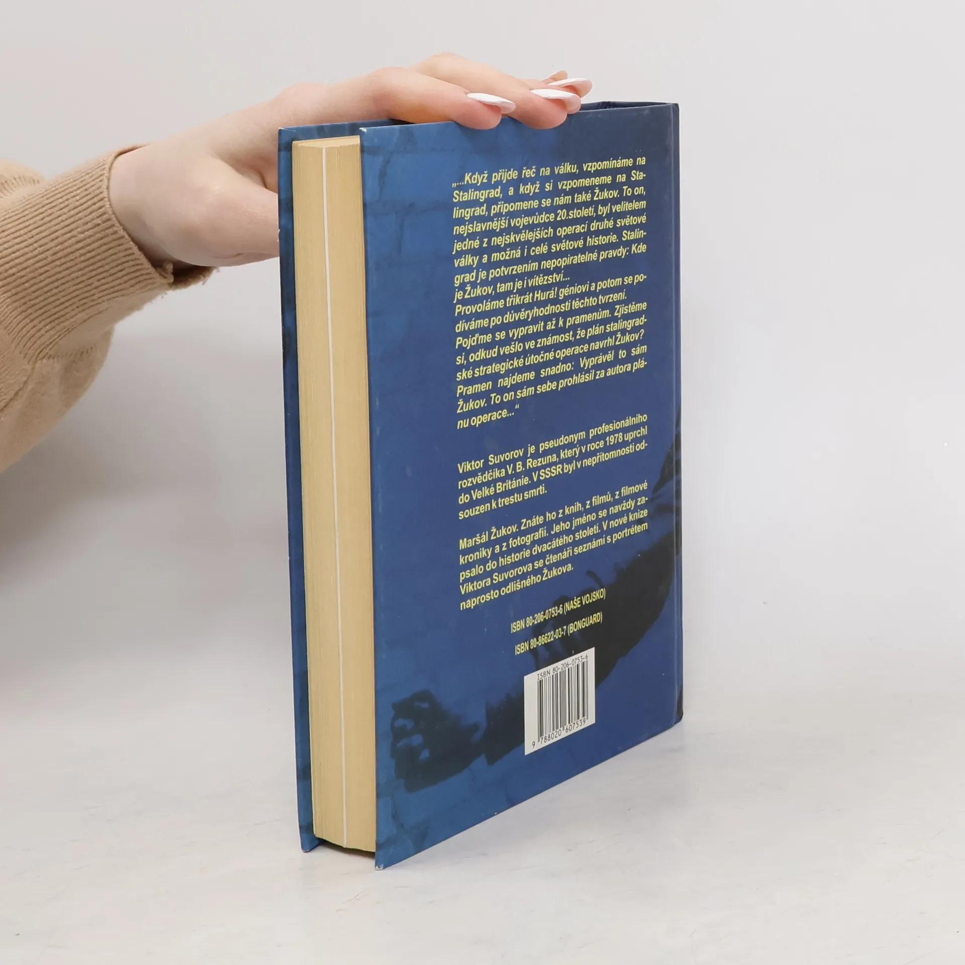 „…Když přijde řeč na válku, vzpomínáme na Stalingrad, a když si vzpomeneme Stalingrad, připomene se nám také Žukov. To on, nejslavnější vojevůdce 20. století, byl velitelem jedné z nejskvělejších operací druhé světové války a možná i celé světové historie. Stalingrad je potvrzením nepopiratelné pravdy: Kde je Žukov, tam je i vítězství… Provoláme třikrát Hurá! Géniovi a potom se podíváme po důvěryhodnosti těchto tvrzení. Pojďme se vypravit až k pramenům. Zjistěme si, odkud vešlo ve známost, že plán stalingradské strategické útočné operace navrhl Žukov? Pramen najdeme snadno: Vyprávěl to sám Žukov. To on sám sebe prohlásil za autora plánu operace…“ Viktor Suvorov je pseudonym profesionálního rozvědčíka V. B. Rezuna, který v roce 1978 uprchl do Velké Británie. V SSSR byl nepřítomnosti odsouzen k trestu smrti. Maršál Žukov. Znáte ho z knih, z filmů, z filmové kroniky a z fotografií. Jeho jméno se navždy zapsalo do historie dvacátého století. V nové knize Viktora Suvorova se čtenáři seznámí s portrétem naprosto odlišného Žukova.