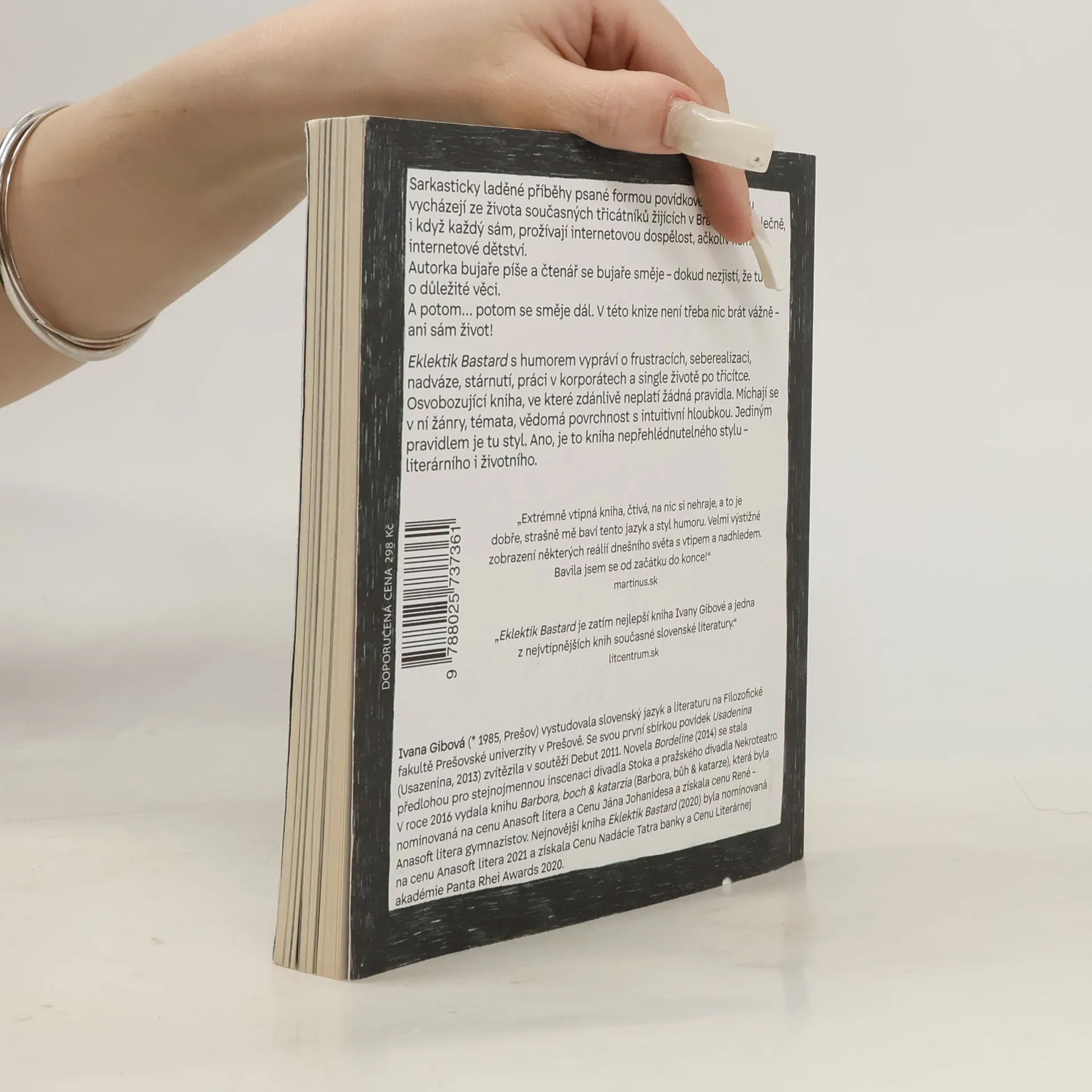 Sarkasticky laděné příběhy psané formou povídkového komiksu vycházejí ze života současných třicátníků žijících v Bratislavě. Společně, i když každý sám, prožívají internetovou dospělost, ačkoliv neměli internetové dětství. Autorka bujaře píše a čtenář se bujaře směje – dokud nezjistí, že tu jde o důležité věci. A potom… potom se směje dál. V této knize není třeba nic brát vážně – ani sám život! Eklektik Bastard s humorem vypráví o frustracích, seberealizaci, nadváze, stárnutí, práci v korporátech a single životě po třicítce. Osvobozující kniha, ve které zdánlivě neplatí žádná pravidla. Míchají se v ní žánry, témata, vědomá povrchnost s intuitivní hloubkou. Jediným pravidlem je tu styl. Ano, je to kniha nepřehlédnutelného stylu – literárního i životního. „Extrémně vtipná kniha, čtivá, na nic si nehraje, a to je dobře, strašně mě baví tento jazyk a styl humoru. Bavila jsem se od začátku do konce!“ – Martinus.sk „Eklektik Bastard je zatím nejlepší kniha Ivany Gibové a jedna z nejvtipnějších knih současné slovenské literatury.“ – litcentrum.sk