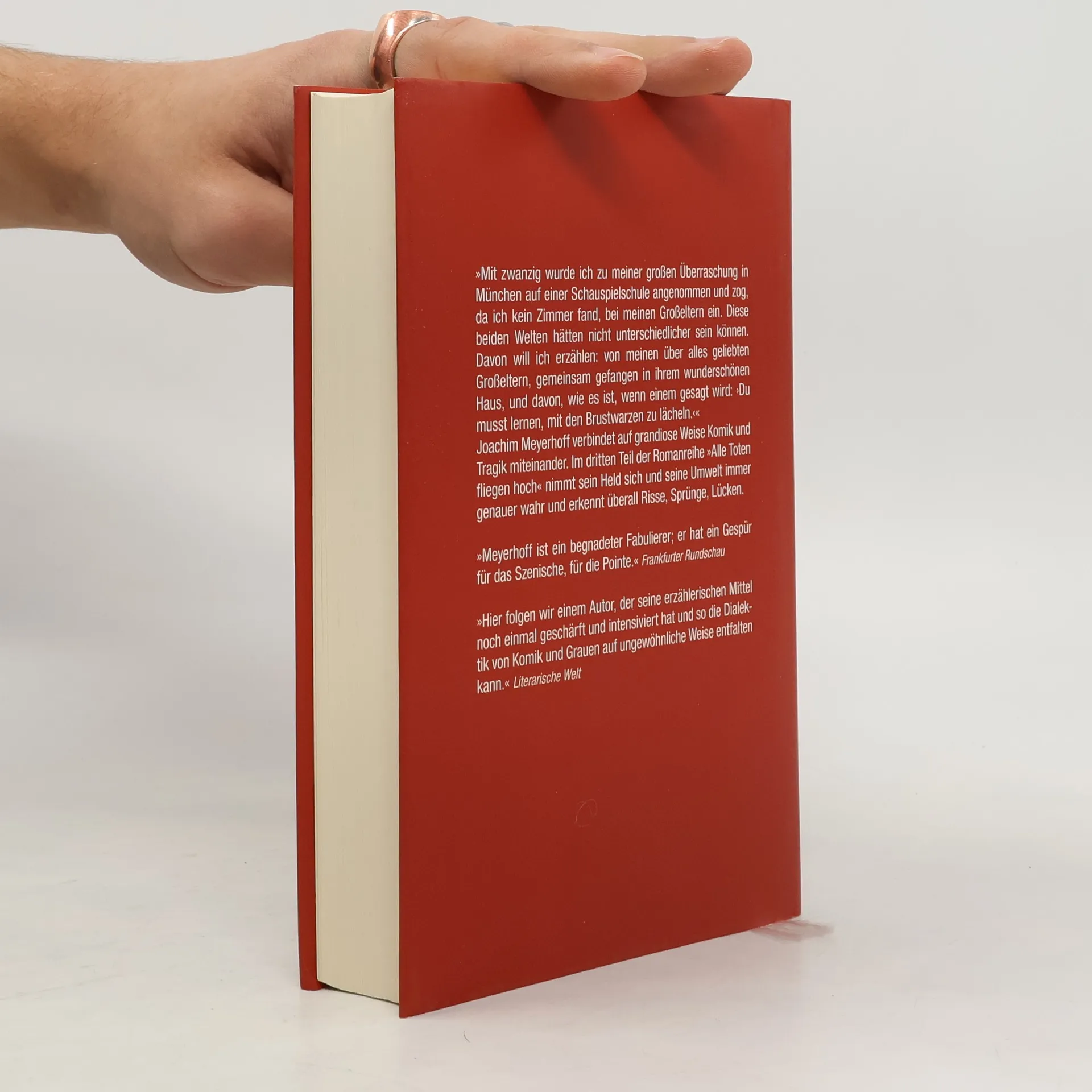 Im dritten Teil der Bestsellerserie zieht Joachim, frisch angenommen an der Schauspielschule in München, zu seinen Großeltern in eine großbürgerliche Villa in Nymphenburg. Nach einer Kindheit auf dem Gelände einer Psychiatrie und einem Austauschjahr in Amerika steht er vor neuen Herausforderungen. Als Wanderer zwischen den Welten erlebt er den Kontrast zwischen der schillernden Diva, seiner Großmutter, und dem strengen, emeritierten Philosophieprofessor, seinem Großvater. Ihr Leben ist von abenteuerlichen Ritualen geprägt, in denen Alkohol eine zentrale Rolle spielt. Tagsüber wird Joachim an der Schauspielschule systematisch zerrissen, während er abends auf dem opulenten Sofa seine Verwirrung mit Rotwein und anderen Getränken ertränkt. Die chaotischen Erlebnisse seiner Großeltern und sein eigener Ausbildungsweg führen zu einer Überforderung, während er gleichzeitig erkennt, dass auch sie gegen eine innere Leere ankämpfen. Auf der Bühne soll er sein Innerstes nach außen kehren, was oft grandios misslingt. Joachim Meyerhoff verfeinert seine Kunst, Komik und Tragik zu verbinden, und sein Held wird zunehmend sensibel für die Risse und Lücken in seiner Umgebung. Ein fulminantes Lesevergnügen!