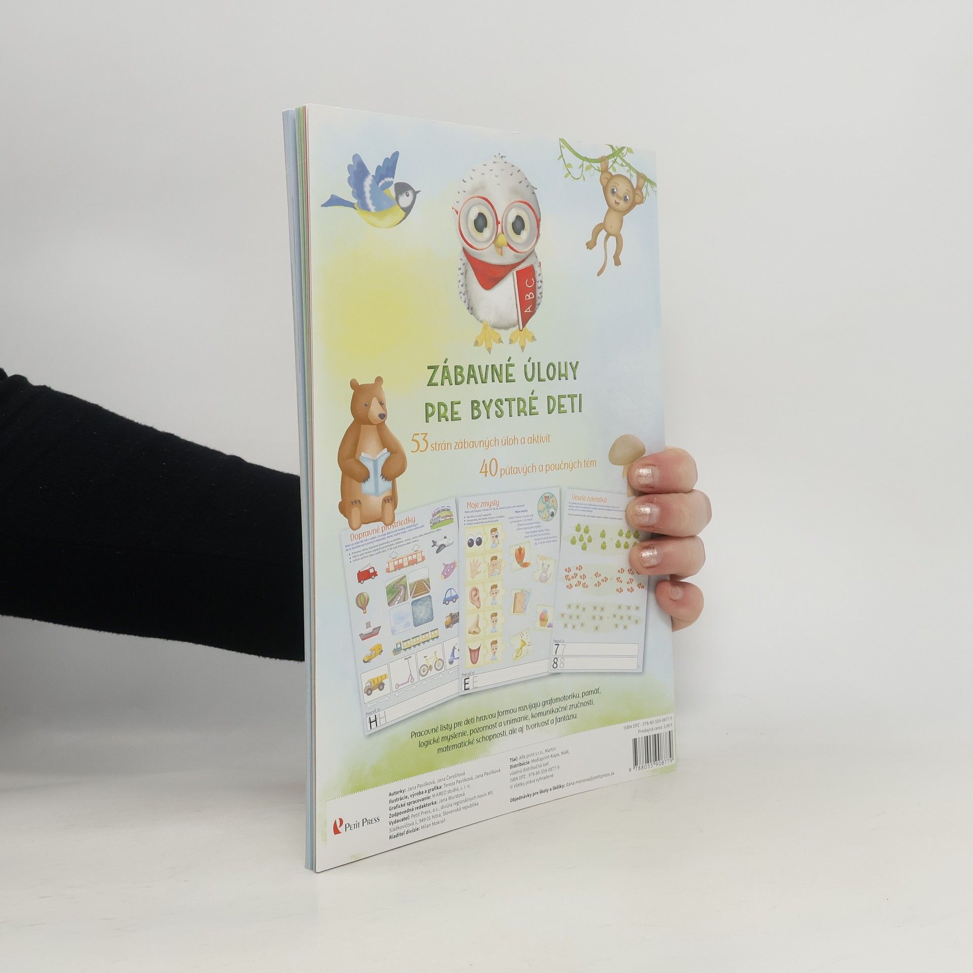 Edukačný pracovný zošit Zábavné úlohy pre deti ponúka na 60 stranách množstvo zábavných aktivít pre predškolákov a prvákov. Témy sú spracované do pútavých úloh, ktoré obohacujú deti v oblasti grafomotoriky a podporujú rozvoj pamäti, logického myslenia, pozornosti, zrakového a sluchového vnímania, komunikačných zručností, matematických schopností, ako aj kreativity a fantázie. Tieto úlohy sú zdrojom informácií a prirodzene podporujú záujem o témy ako zdravie, príroda, ekológia, medziľudské vzťahy, slušné správanie a cestovanie. Pracovný zošit môžu využívať pedagógovia, odborní zamestnanci, rodičia, vychovávatelia a starí rodičia, ktorí sa zaujímajú o úspech svojich detí v škole. Autorkou je detská psychologička Jana Pavlíková, ktorá napísala niekoľko detských kníh a ilustrovala maľovanku pre deti, a spoluautorkou je Jana Čerešňová, špeciálna pedagogička pracujúca s žiakmi s poruchami učenia a pozornosti.