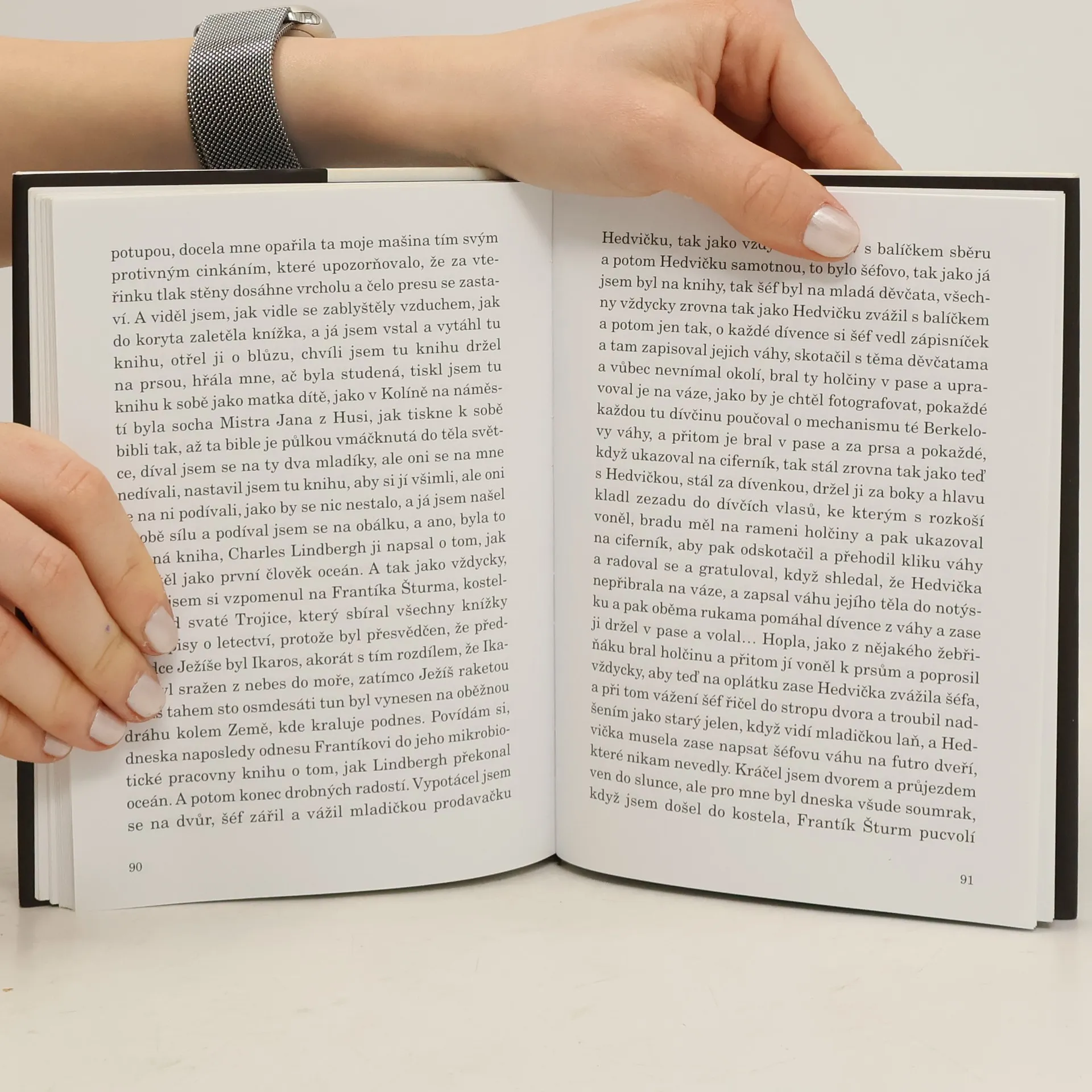 Dělník ve sběrně starého papíru Haňťa pracuje pětatřicet let ve sklepení sběrny u stařičkého lisu. Z hromad starého papíru zachraňuje vzácné knihy a shromažďuje je ve svém pokojíku, čte si v nich a tak je „proti své vůli vzdělán“. Celá novela je vlastně vnitřní Haňťův monolog, psaný sonátovou formou se spoustou stále se vracejících motivů. Čtenář se seznámí s Haňťovou první láskou Mančinkou i cikánkou Ilonkou, která zmizela v koncentračním táboře. Je svědkem každodenního zápasu s horami papíru i s nekonečnými džbány piva, vyslyší Haňťovy citace filozofů i jeho sny o důchodu, do kterého si odvede i vysloužilý mechanický lis.