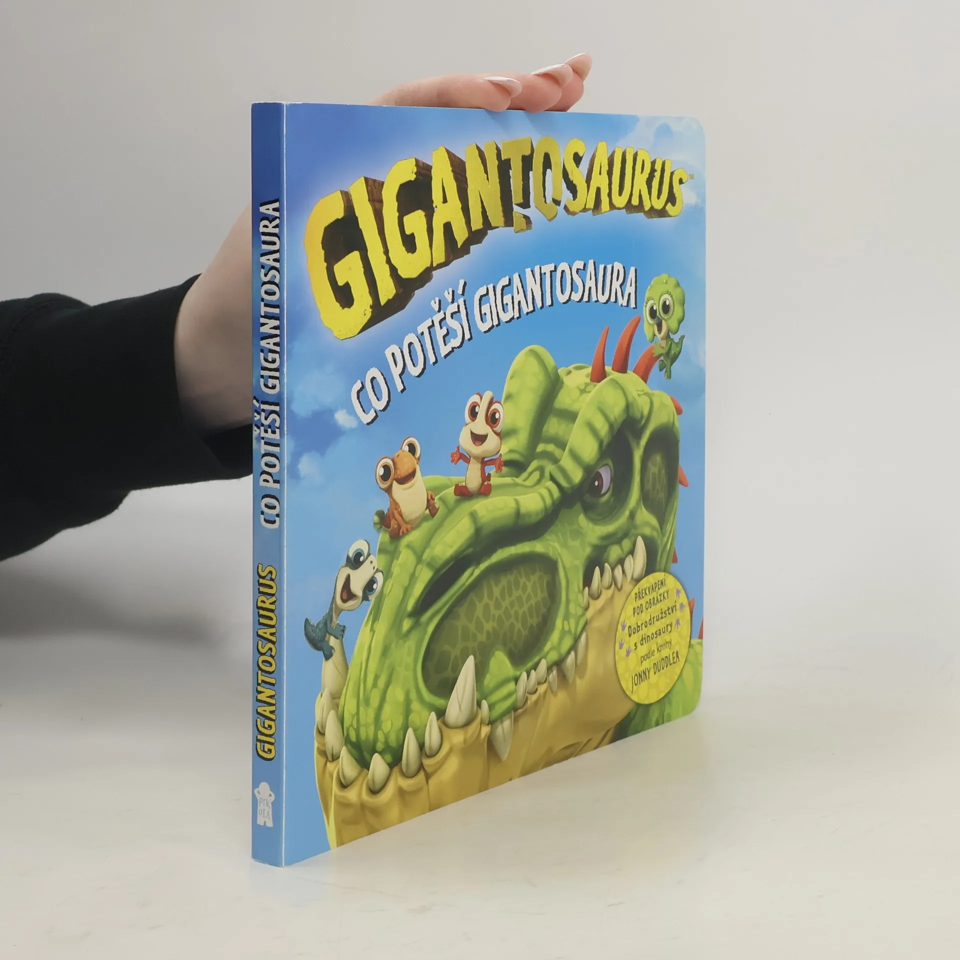 Každý malý dinosauřík se učí, že jednou z nejdůležitějších vlastností v životě je laskavost. Co si ale počít s mrzutým gigantosaurem, který na všechny kolem sebe jen nevrle vrčí a vypadá že chce, aby ho ostatní nechali na pokoji? Podaří se kamarádům toho velkého ufrflaného dinosaura rozveselit? Nahlédni pod jednotlivá okénka v knize a dozvíš se mnohem víc.