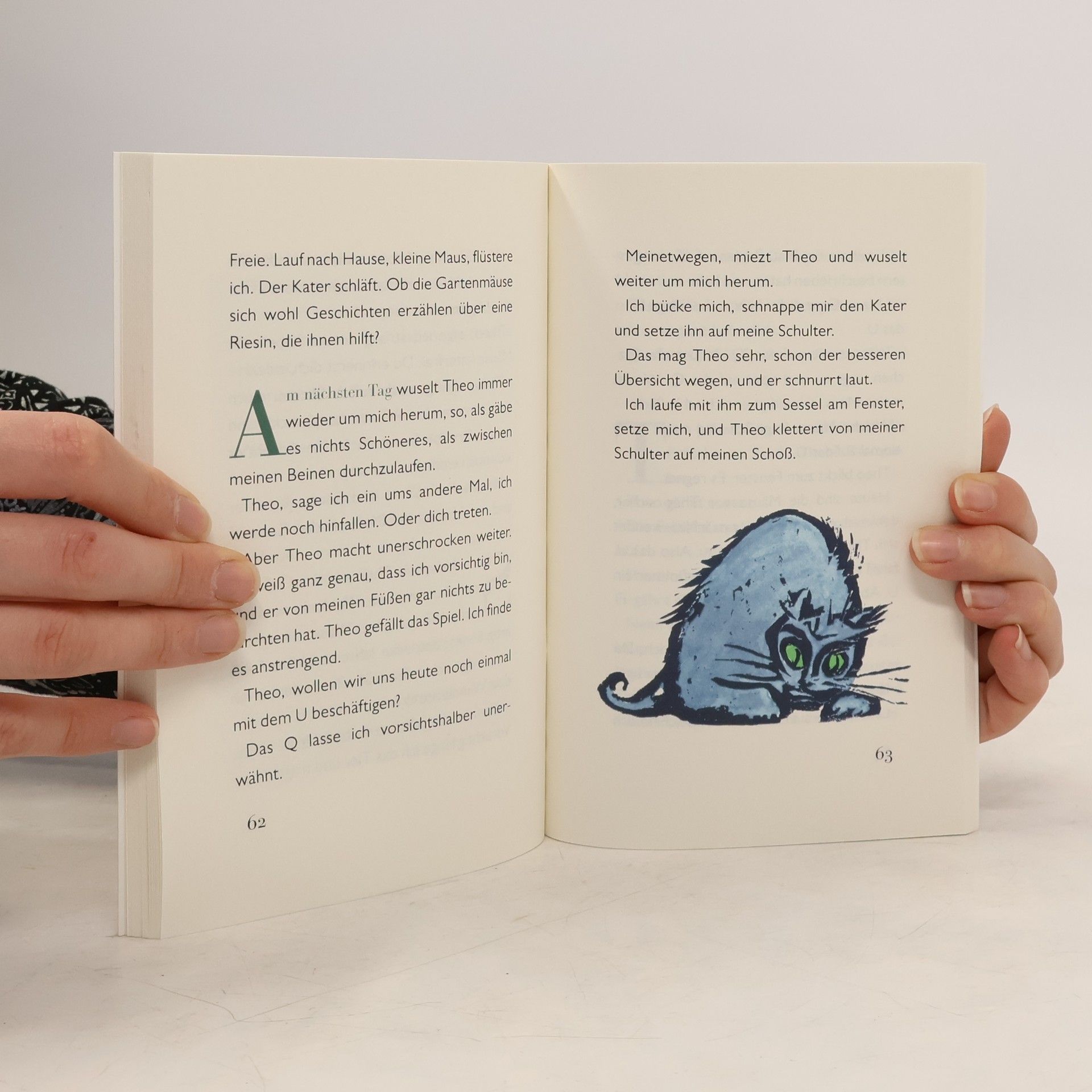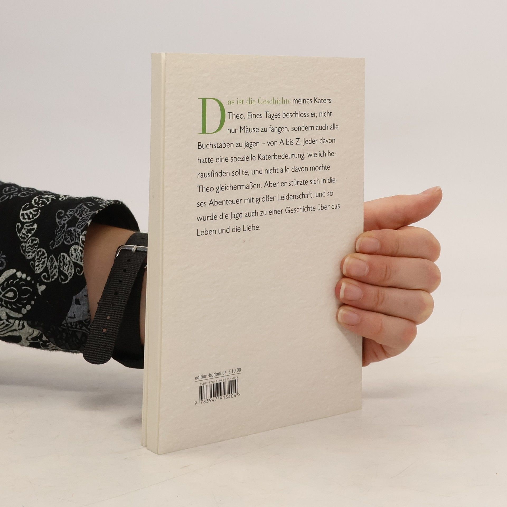 Das ist die Geschichte meines Katers Theo. Eines Tages beschloss er, nicht nur Mäuse zu fangen, sondern auch alle Buchstaben zu jagen – von A bis Z. Jeder davon hatte eine spezielle Katerbedeutung, wie ich herausfinden sollte, und nicht alle davon mochte Theo gleichermaßen. Aber er stürzte sich in dieses Abenteuer mit großer Leidenschaft, und so wurde die Jagd auch zu einer Geschichte über das Leben und die Liebe.
