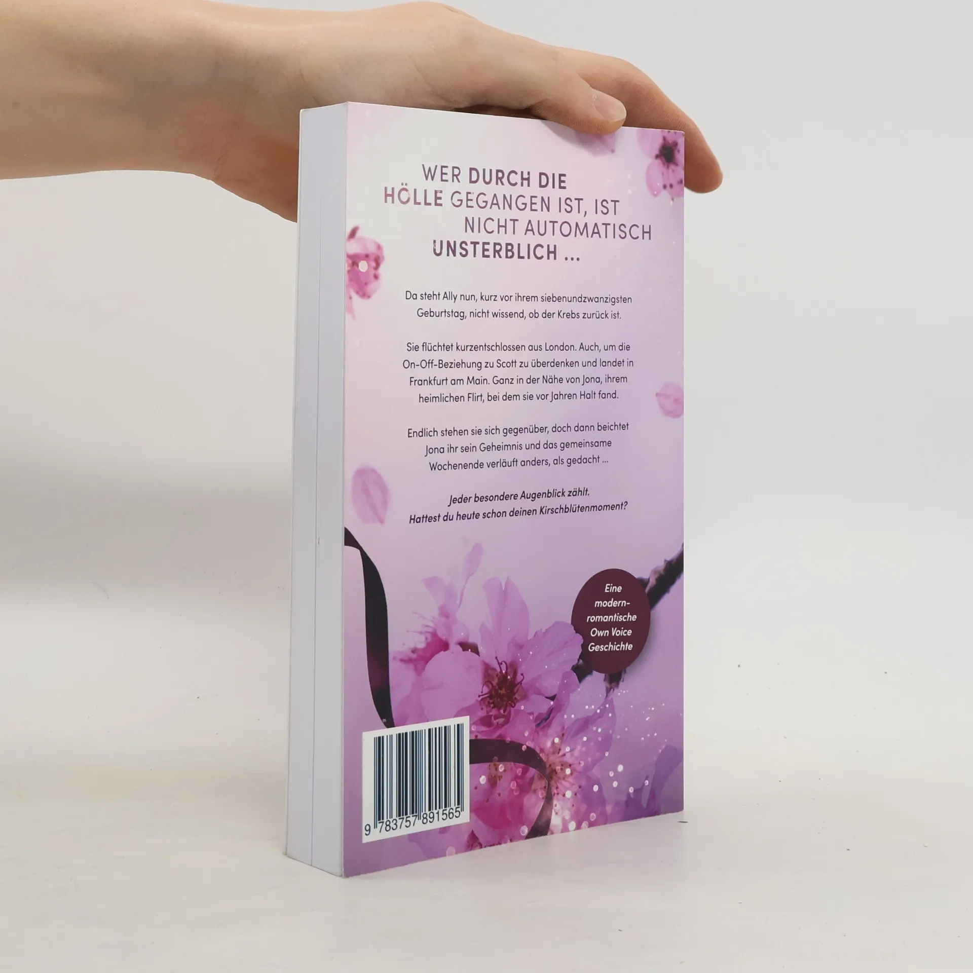 Wer durch die Hölle gegangen ist, ist nicht automatisch unsterblich... Da steht Ally nun, kurz vor ihrem siebenundzwanzigsten Geburtstag, nicht wissend, ob der Krebs zurück ist. Sie flüchtet kurzentschlossen aus London. Auch, um die On-Off-Beziehung zu Scott zu überdenken und landet in Frankfurt am Main. Ganz in der Nähe von Jona, ihrem heimlichen Flirt, bei dem sie vor Jahren Halt fand. Endlich stehen sie sich gegenüber, doch dann beichtet Jona ihr sein Geheimnis und das gemeinsame Wochenende verläuft anders, als gedacht... Jeder besondere Augenblick zählt. Hattest du heute schon deinen Kirschblütenmoment? Abgeschlossene Geschichte - kann ohne Vorkenntnisse und unabhängig von anderen Geschichten von Lilly M. Beck gelesen werden. Erste LeserInnenstimmen Eine starke Geschichte über die Überwindung des Traumas nach einer Krebserkrankung. Ein modernes Märchen, in dem magische Dinge passieren. Lilly M. Beck berührt tief mit ihrem Own Voice Roman über Selbstliebe, Vertrauen, Akzeptanz und Vergänglichkeit.