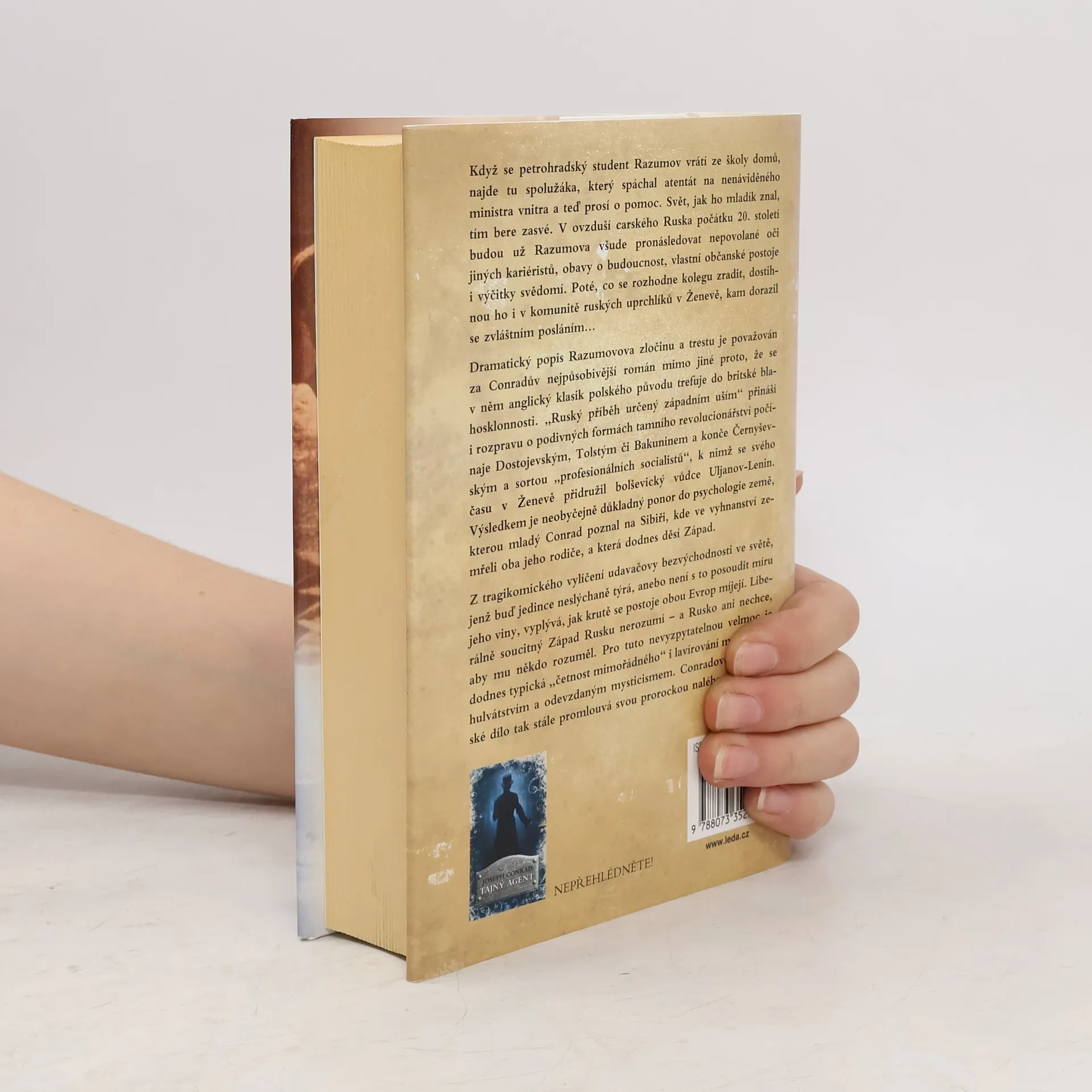 Petrohradský student Razumov se vrací domů a nachází spolužáka, který spáchal atentát na ministra vnitra a nyní žádá o pomoc. Tím se jeho svět zásadně mění. V carském Rusku na počátku 20. století je pronásledován kariéristy, obavami o budoucnost, občanskými postoji a výčitkami svědomí. Po rozhodnutí zradit kolegu se ocitá pod tlakem i v komunitě ruských uprchlíků v Ženevě, kam dorazil se zvláštním posláním. Dramatický popis Razumovova zločinu a trestu je považován za jedno z nejpůsobivějších děl autora, který kritizuje britskou blahosklonnost. Příběh, určený západnímu publiku, zkoumá podivné formy ruského revolucionářství, od Dostojevského a Tolstého po Bakunina a Černyševského, a zmiňuje i bolševického vůdce Lenina. Výsledkem je hluboký pohled do psychologie země, kterou mladý autor poznal na Sibiři, kde zemřeli jeho rodiče. Tragikomické vylíčení udavačovy bezvýchodnosti ukazuje, jak se postoje Západu a Ruska míjejí. Liberálně soucitný Západ Rusku nerozumí, a Rusko ani nechce, aby mu někdo rozuměl. Tato nevyzpytatelná velmoc se vyznačuje „četností mimořádného" a lavírováním mezi hulvátstvím a mysticismem. Autorovo mistrovské dílo tak stále promlouvá svou prorockou naléhavostí.