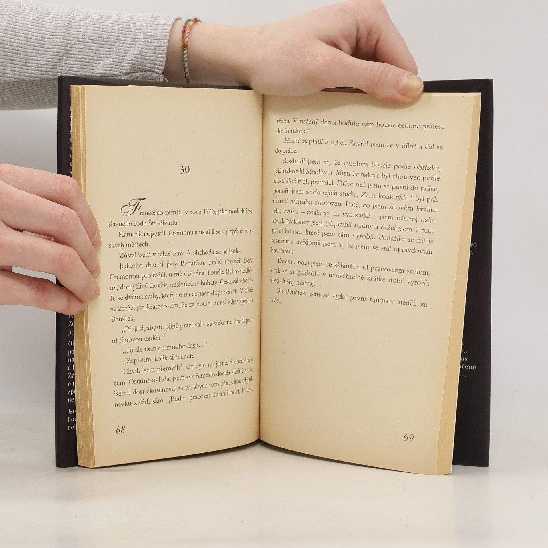 Pravá hudba je ukryta mezi notami, pravil prý kdysi W. A. Mozart a mistrovství francouzského autora Maxence Fermina jako by se zase skrývalo mezi slovy, poletujícími s lehkostí a kreslícími podmanivou, snovou atmosféru… vyprávějící o umění, o snech a o nehmotných říších, ve kterých se rodí inspirace… Jsme v Benátkách koncem 18. století. Do města vtrhly při svém „italském“ tažení napoleonské jednotky. Johannes Karelsky, houslista s geniálním talentem, musí narukovat do francouzské armády. Když je však boji zraněn, ocitne se na bytě u záhadného výrobce houslí, který je kromě toho vášnivým šachistou a milovníkem kořalky… Oba tajemní muži si brzy porozumí a jejich vztah, založený na vzájemném respektu, tichu a hudbě, přeroste v přátelství. Záhadná ozvěna ženského hlasu, o níž nikdo netuší, kam až je zavede, zpečetí nakonec jejich svazek smrtí. Jsou černé housle, dílo mistra houslaře, nástrojem zatracení, nebo vykoupení?