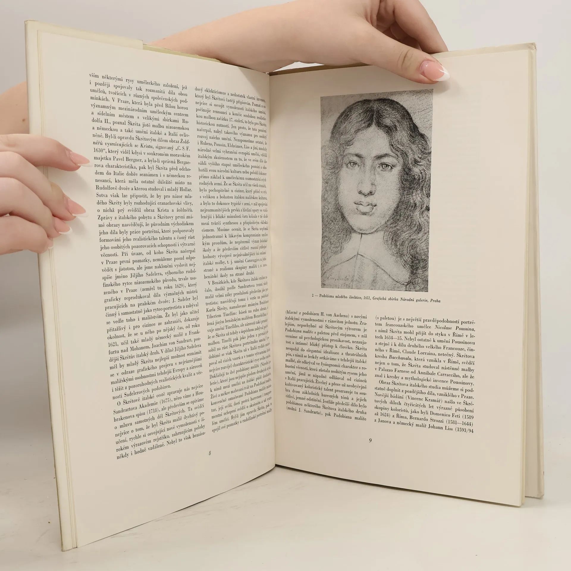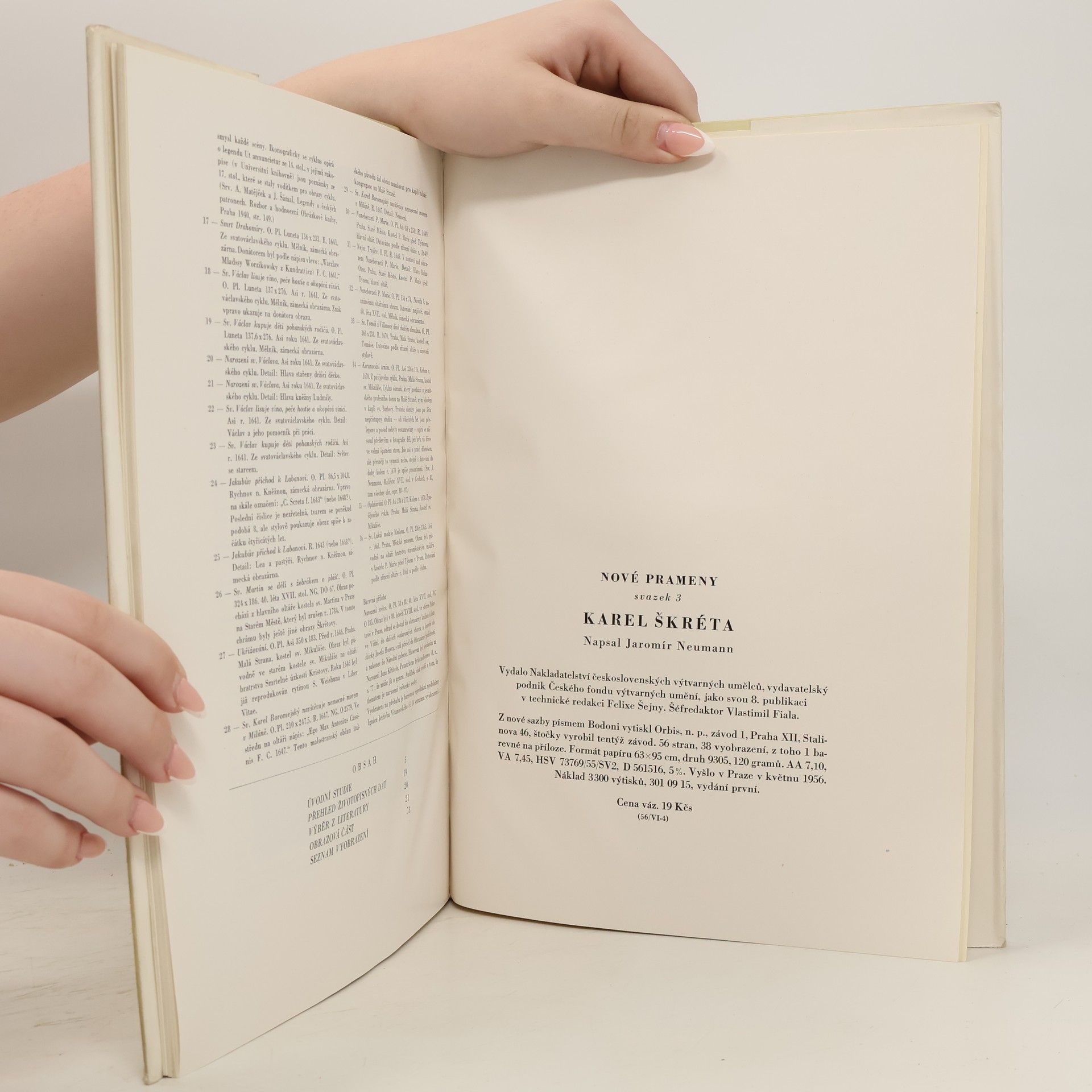 Studie o velkém klasiku české malby, který žil a tvořil v nejtěžších letech pobělohorských (1610-1674). Autor rozbírá situaci českého umění v době, kdy se utvářel malířský projev Karla Škréty a sleduje pak životní osudy rodiny Škrétů od druhé poloviny 16. století. Další výklad věnuje rozboru jednotlivých děl Karla Škréty, při čemž zdůrazňuje, že "tento skvělý portretista a zkušený komponista velkých náboženských obrazů dovedl nacházet i při řešení konvenčních úloh nové stránky jevů, líčit přesvědčivě lidské charaktery, jímat do rámu obrazů typické životní vztahy". Výklad je doprovozen 36 reprodukcemi Škrétových kreseb a olejomaleb.