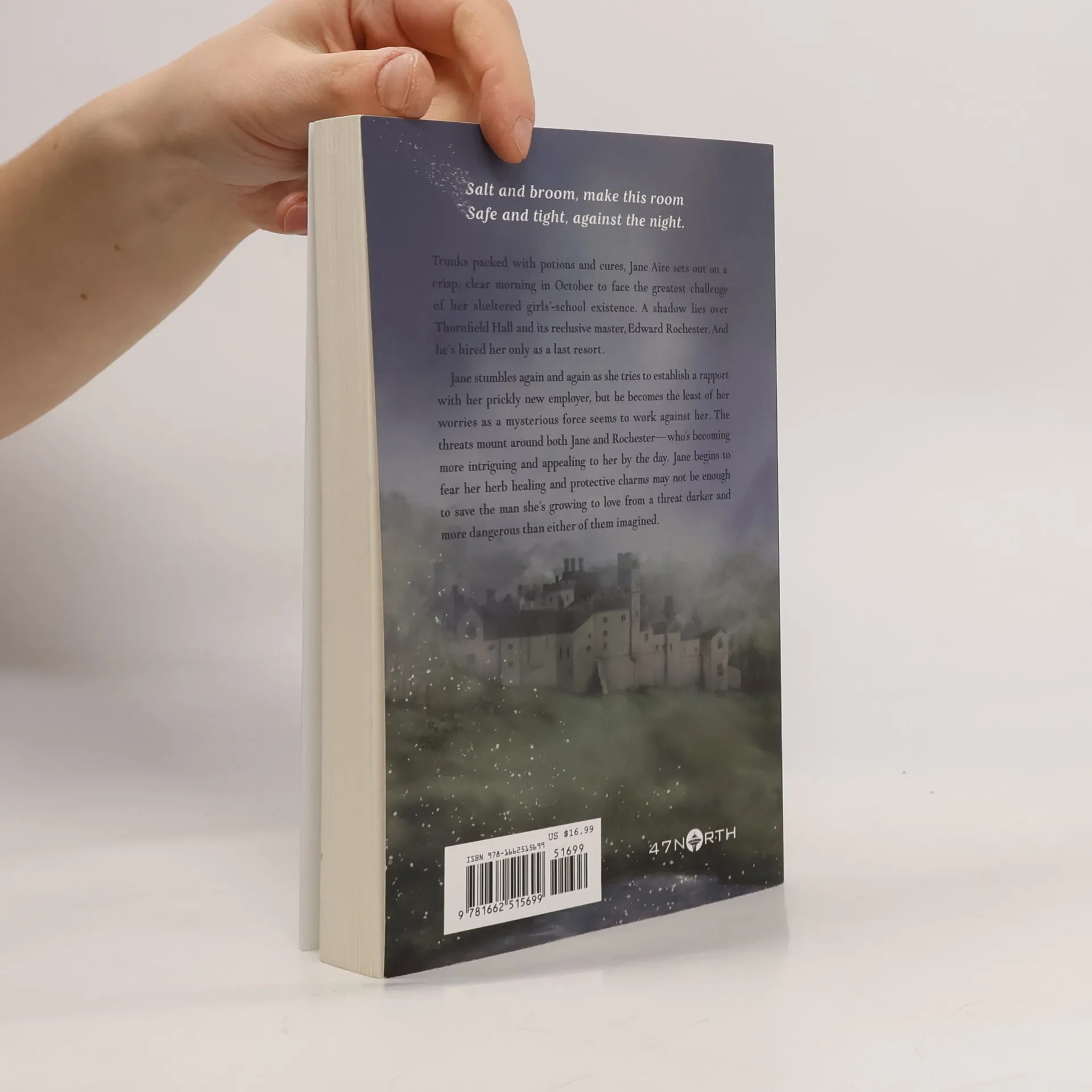 A gifted healer unravels the mysteries of a cursed estate―and its enigmatic owner―in a witchy retelling of Jane Eyre . Salt and broom, make this room Safe and tight, against the night. Trunks packed with potions and cures, Jane Aire sets out on a crisp, clear morning in October to face the greatest challenge of her sheltered girls’-school existence. A shadow lies over Thornfield Hall and its reclusive master, Edward Rochester. And he’s hired her only as a last resort. Jane stumbles again and again as she tries to establish a rapport with her prickly new employer, but he becomes the least of her worries as a mysterious force seems to work against her. The threats mount around both Jane and Rochester―who’s becoming more intriguing and appealing to her by the day. Jane begins to fear her herb healing and protective charms may not be enough to save the man she’s growing to love from a threat darker and more dangerous than either of them imagined.