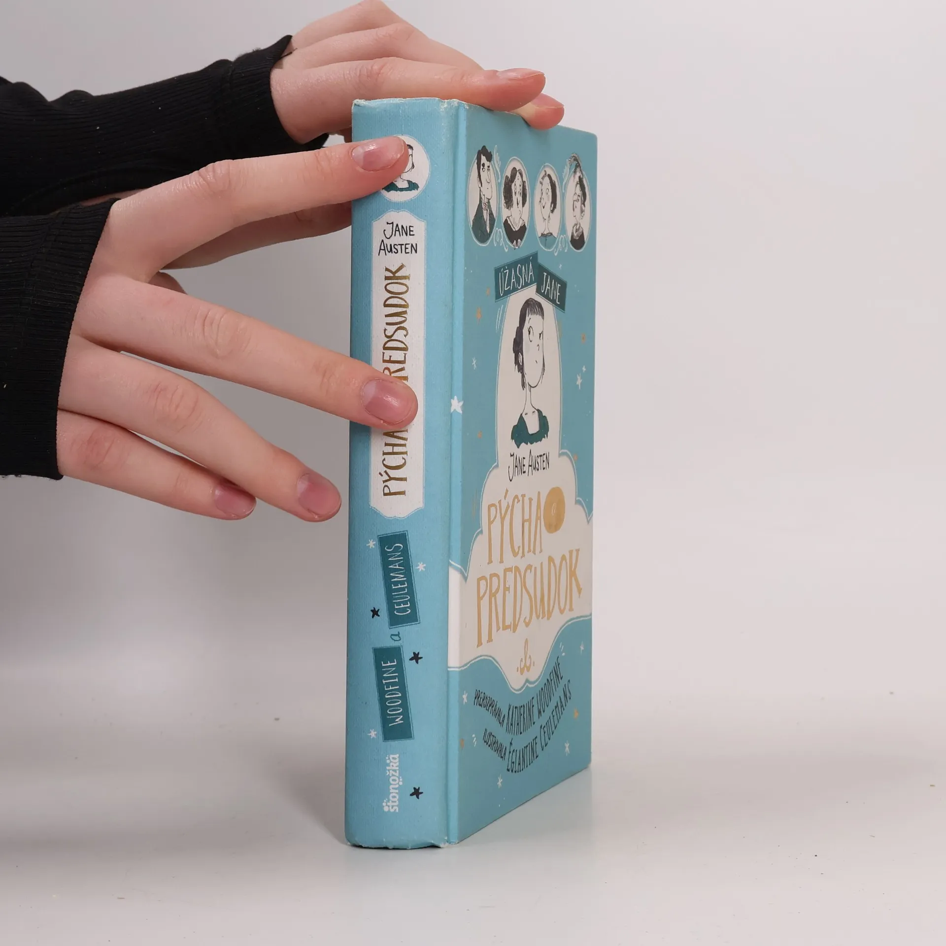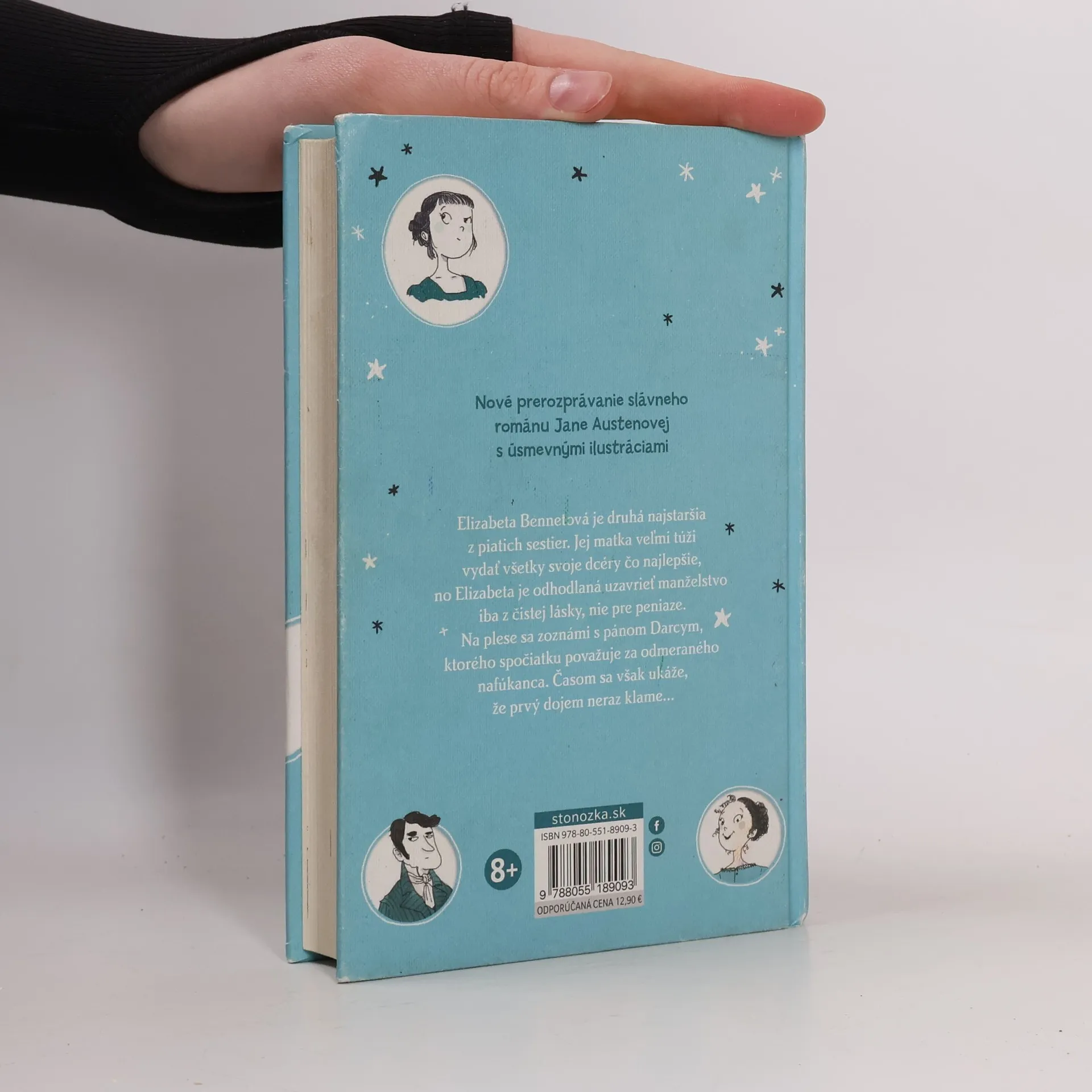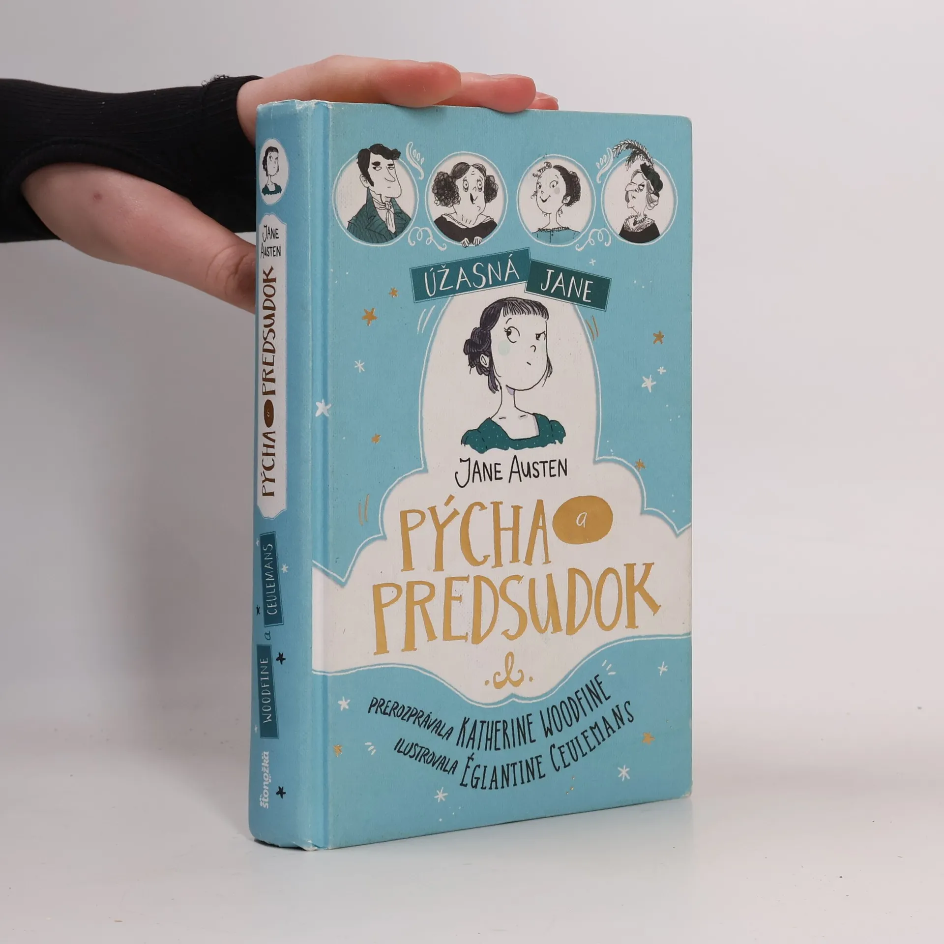 Nové prerozprávanie slávneho románu Jane Austenovej s úsmevnými ilustráciami Elizabeta Bennetová je druhá najstaršia z piatich sestier. Matka veľmi túži vydať všetky svoje dcéry čo najlepšie, no Elizabeta je odhodlaná uzavrieť manželstvo iba z čistej lásky, nie pre peniaze. Na plese sa zoznámi s pánom Darcym, ktorého spočiatku považuje za pyšného a nadutého, čomu veľmi nepomôže ani jeho pohŕdavá poznámka o Elizabetinej sestre. Časom sa však ukáže, že prvý dojem neraz klame... Katherine Woodfine je od mladosti veľkou fanúšičkou Jane Austenovej, preto má výborné predpoklady na to, aby sestry Bennetové priblížila novému mladšiemu publiku. Églantine Ceulemans zachytáva Austenovej satiru a vtip a oživuje živelnosť jej prepracovaných postáv vo vtipných čiernobielych ilustráciách. Pre deti od 8 rokov Z anglického originálu preložila Zdenka Buntová.