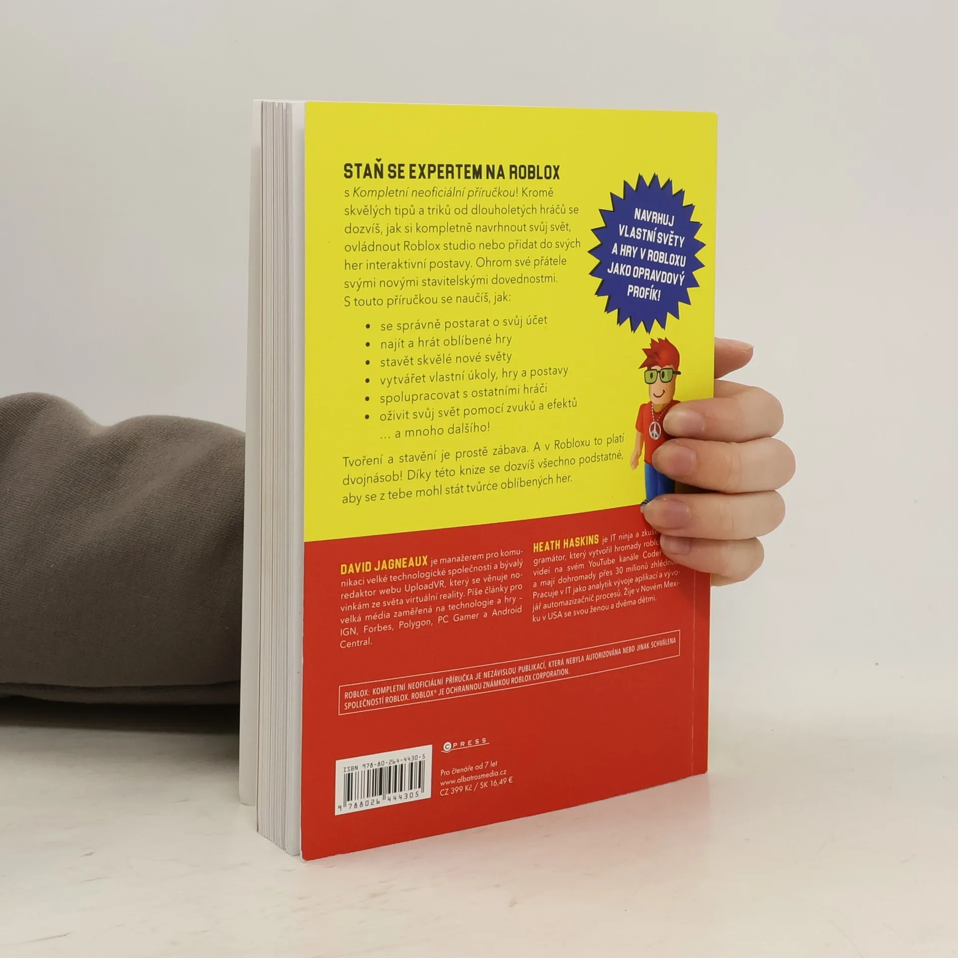 Hraní tvoření a stavění je prostě zábava. A v Robloxu to platí dvojnásob!. Ohrom své přátele svými novými stavitelskými dovednostmi. S touto příručkou se naučíš, jak se správné postarat o svůj účet, najít a hrát oblíbené hry, stavět skvělé nové světy, vytvářet vlastní úkoly, hry a postavy, spolupracovat s ostatními hráči a oživit svůj svět pomocí zvuků a efektů.