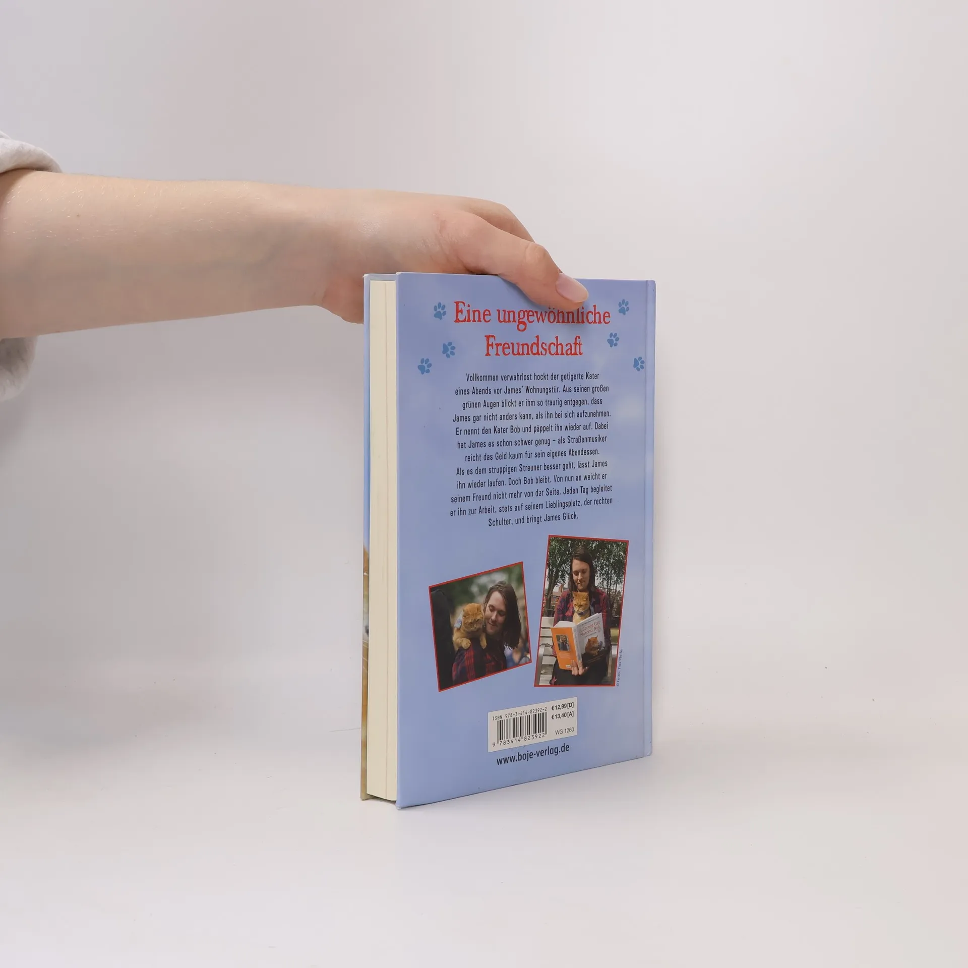 Speziell für junge Leser erzählt: Die Geschichte von Bob, dem Streuner, und seinem Freund James Vollkommen verwahrlost hockt der getigerte Kater eines Abends vor James´ Wohnungstür. Aus seinen großen grünen Augen blickt er ihm so traurig entgegen, dass James gar nicht anders kann, als ihn bei sich aufzunehmen. Er nennt den Kater Bob und päppelt ihn wieder auf. Dabei hat James es schon schwer genug - als Straßenmusiker reicht das Geld kaum für sein eigenes Abendessen. Als es dem struppigen Streuner besser geht, lässt James ihn wieder laufen. Doch Bob bleibt. Von nun an weicht er seinem Freund nicht mehr von der Seite. Jeden Tag begleitet er ihn zur Arbeit, stets auf seinem Lieblingsplatz, der rechten Schulter, und bringt James Glück. James Bowens Kult-Bestseller über die ungewöhnliche Freundschaft zu seinem Kater Bob - die Buchversion für Jugendliche! Mit Fotos von Bob und James