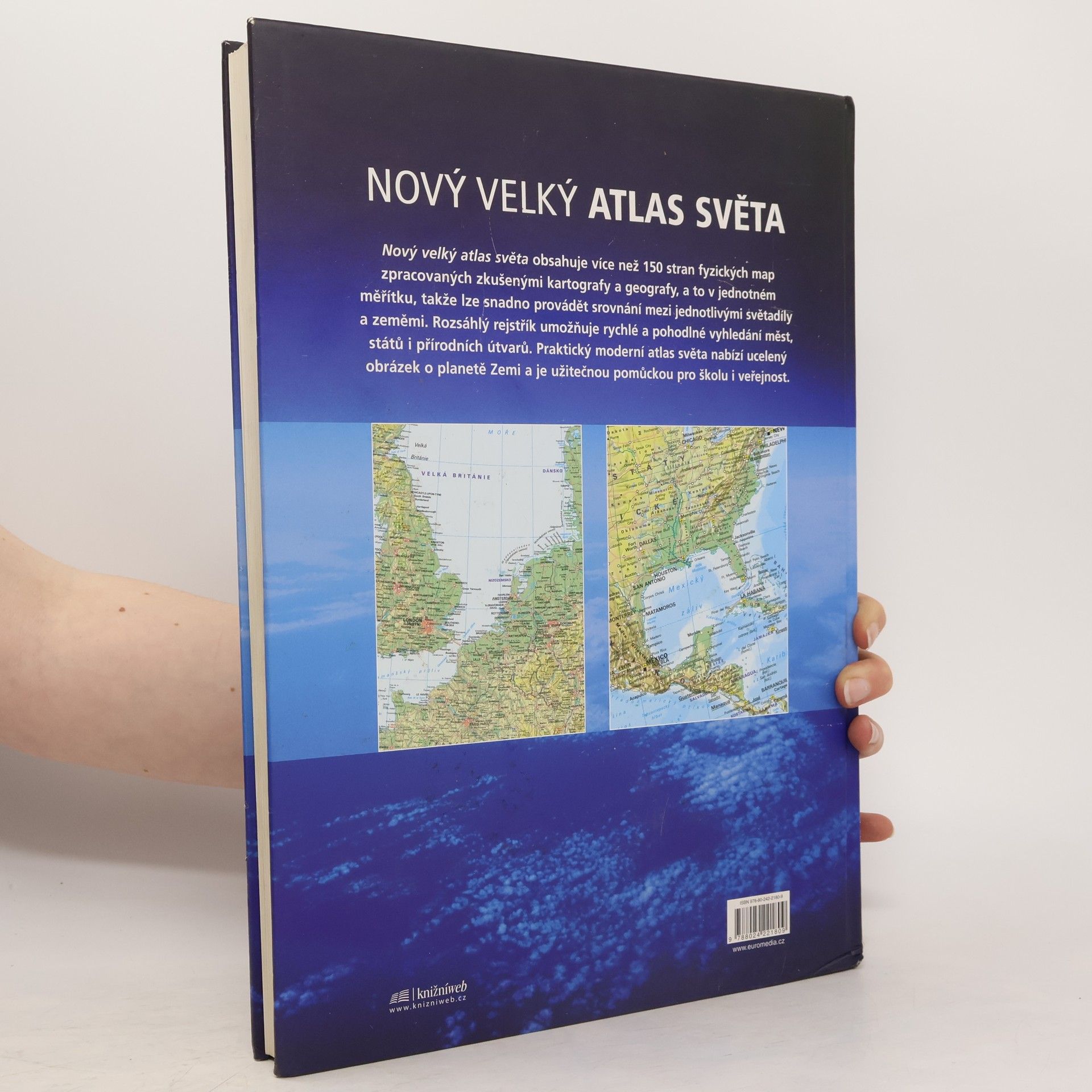 Nový velký atlas světa zahrnuje více než 150 stran fyzických map, zpracovaných zkušenými kartografy a geografy, a to v jednotném měřítku, takže lze snadno provádět srovnání mezi jednotlivými světadíly a zeměmi. Rozsáhlý rejstřík umožňuje rychlé a pohodlné vyhledání měst, států i přírodních útvarů. Praktický, moderní atlas nabízí ucelený obrázek o planetě Zemi a je užitečnou pomůckou pro školu i veřejnost. Formát: 268 × 366 mm, hmotnost: 2030 g. Původní cena: 599 Kč.... celý text