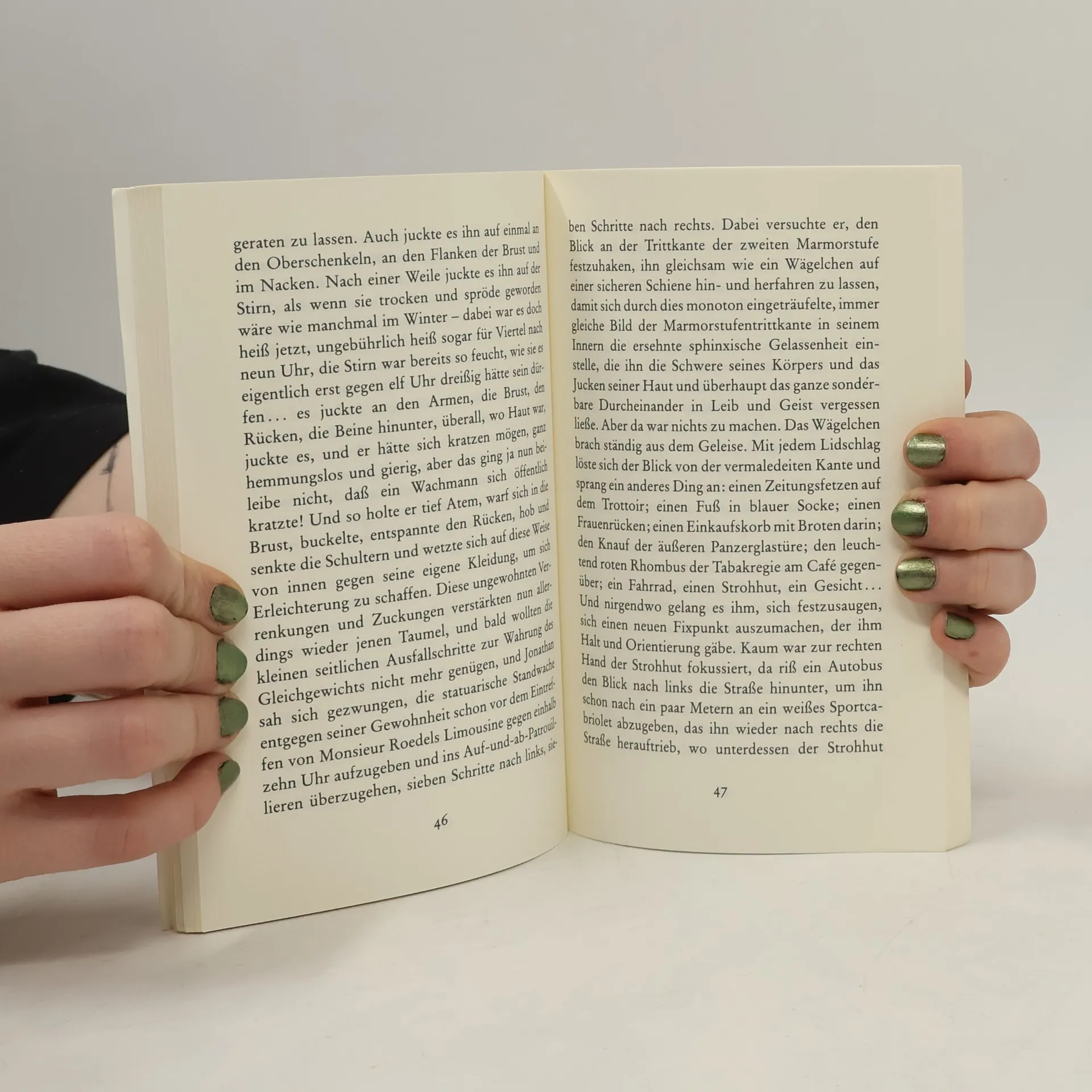 In fünf Monaten wird der Wachmann einer Pariser Bank, der als einzigen Nutzen seiner Tätigkeit das Öffnen des Tores vor dem Direktionswagen erkannt hat, das Eigentum an seiner kleinen Mansarde endgültig erworben haben, wird ein weiterer Markstein seines Lebensplanes gesetzt sein. Doch dieser fatalistische Ablauf wird an einem heißen Freitagmorgen im August 1984 jäh vom Erscheinen einer Taube in Frage gestellt."
