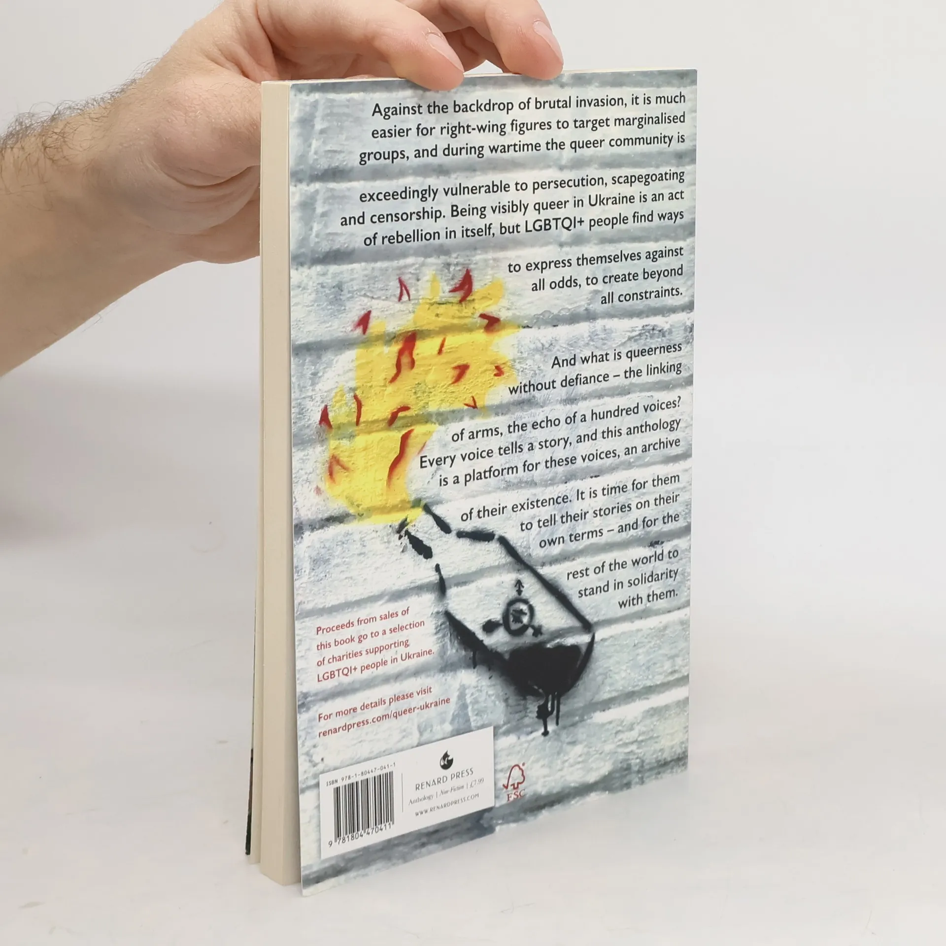It is easy for right-wing figures to target marginalised groups during wartime, and the queer community is vulnerable to persecution and censorship. It is time for them to tell their stories on their own terms - and for the rest of the world to stand in solidarity with them. Proceeds go to Ukrainian LGBTQI+ charities.