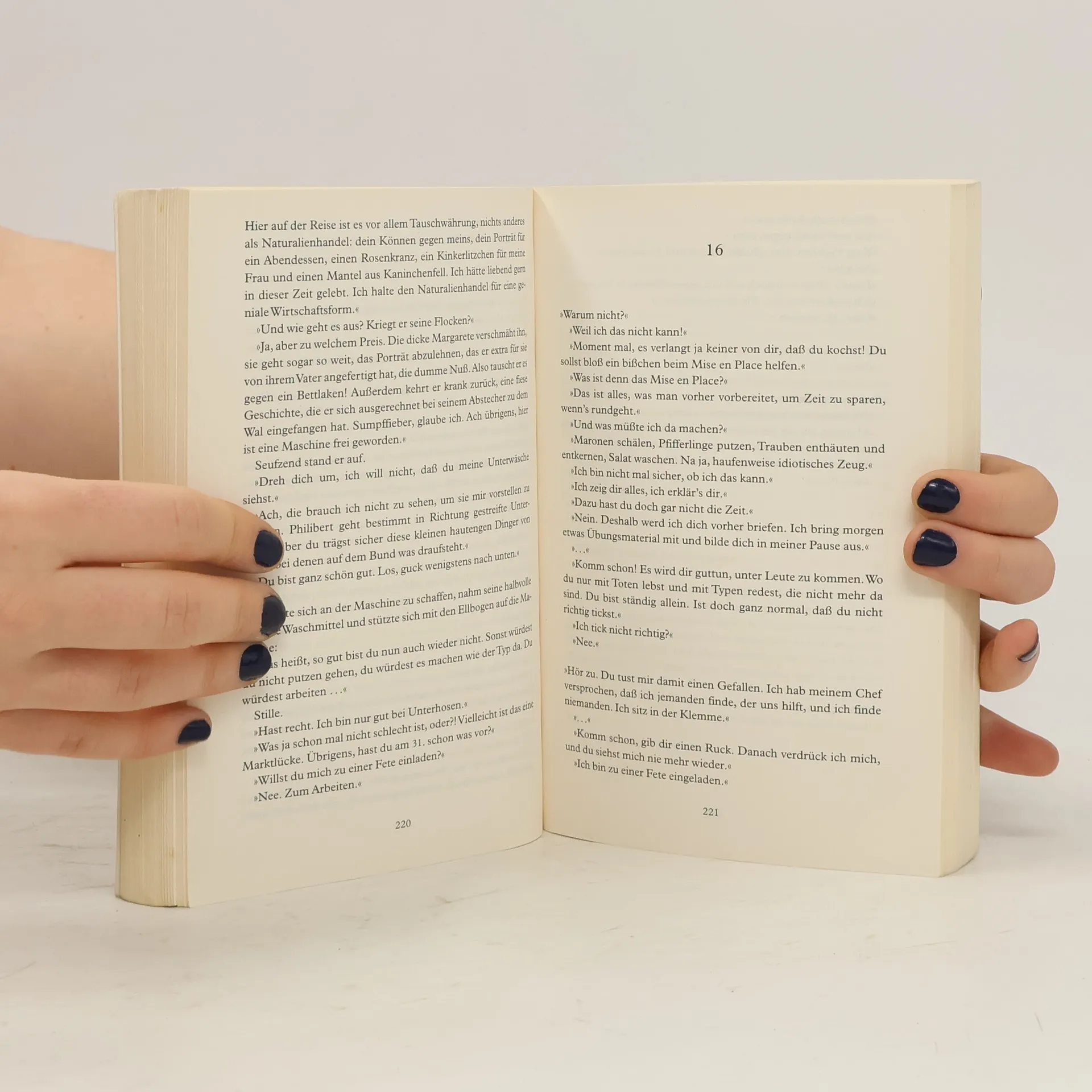 Philibert, von verarmten Adel, ist zwar ein historisches Genie, doch wenn er mit Menschen spricht, gerät er ins Stottern. Camille, magersüchtig und künstlerisch begabt, verdient sich ihren Lebensunterhalt in einer Putzkolonne, und Franck schuftet als Koch in einem Feinschmeckerlokal. Er liebt Frauen, Mototrräder und seine Großmutter Paulette, die keine Lust aufs Altersheim hat. Vier grundverschiedene Menschen in einer verrückten Pariser Wohngemeinschaft, die sich lieben, streiten, bis die Fetzen fliegen, und versuchen, irgendwie zurecht zu kommen. »Ein herzergreifender, zarter und anrührender Roman, in dem das Lachen und die Not verschwistert sind.«Le soir