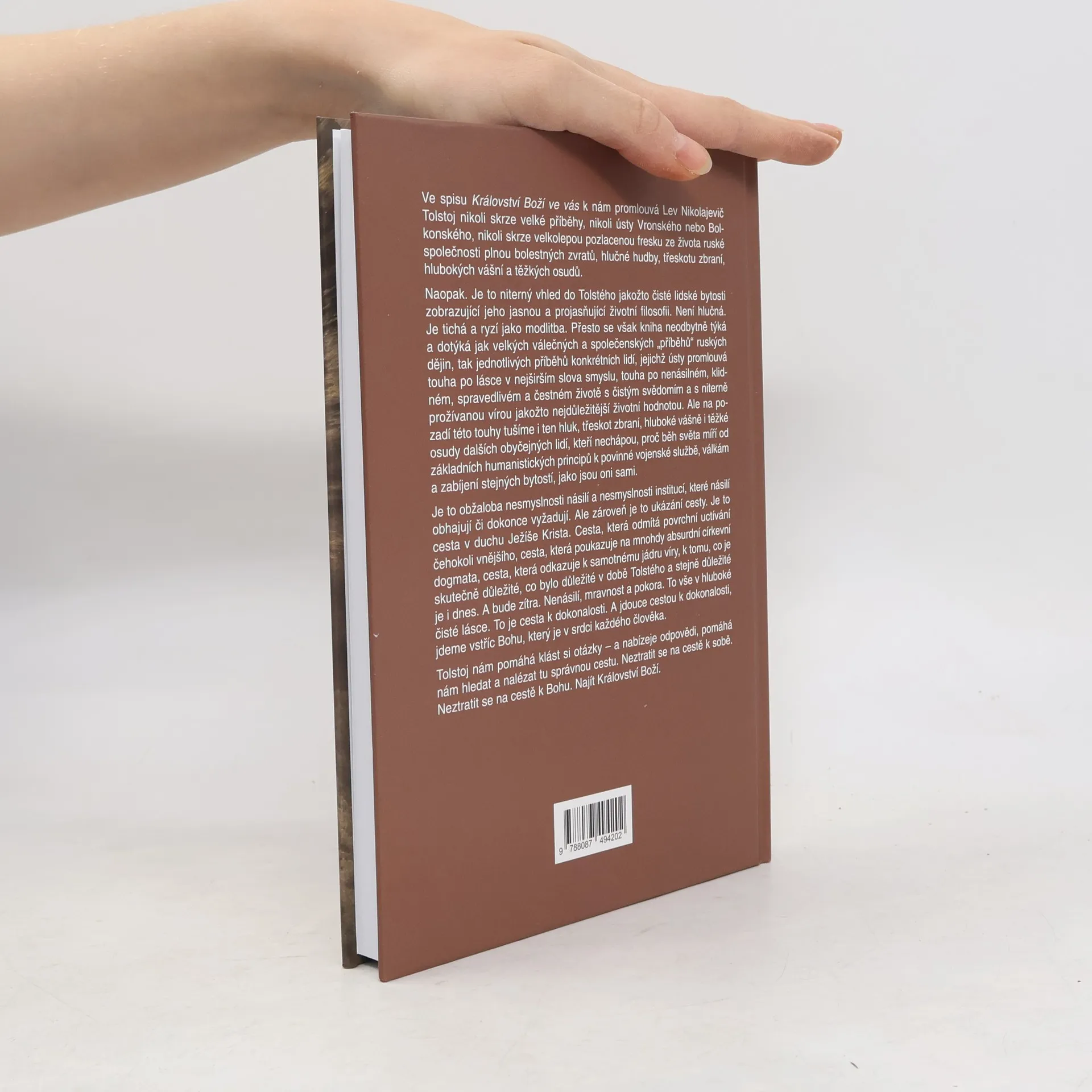 Kniha Království Boží ve vás náleží do spirituální linie Tolstého tvorby, která nabrala sílu a svébytný tón až v posledních dvaceti letech jeho života. Avšak o to vyzráleji a myšlenkově působivěji vyznívá. Vzdálen hluku ruských velkoměst – jak skutečným životem, tak uvažováním – představuje zde Tolstoj své nejniternější přesvědčení a životní filozofii. Promlouvá z ní především touha po lásce v nejširším slova smyslu, touha po nenásilném, klidném, spravedlivém a čestném životě s čistým svědomím a s niterně prožívanou vírou jakožto nejdůležitější životní hodnotou. Ozývá se zde zároveň jednak údiv nad nesmyslným směřováním světa od základních humanistických principů k povinné vojenské službě, válkám a zabíjení lidí, jednak také obžaloba násilí a institucí, které násilí obhajují či dokonce vyžadují. Ale zároveň je tato kniha ukázáním cesty. Cesty v duchu Ježíše Krista. Tato cesta odmítá povrchní uctívání čehokoli vnějšího, poukazuje na mnohdy absurdní církevní dogmata a odkazuje k samotnému jádru víry, k tomu, co je skutečně důležité, co bylo důležité v době Tolstého a stejně důležité je i dnes. Nenásilí, mravnost a pokora. To vše v hluboké čisté lásce. Kniha je výborem z díla podle posledního českého vydání z roku 1925 v překladu Karla Štěpánka, Josefa Bečky a Karla Velemínského.