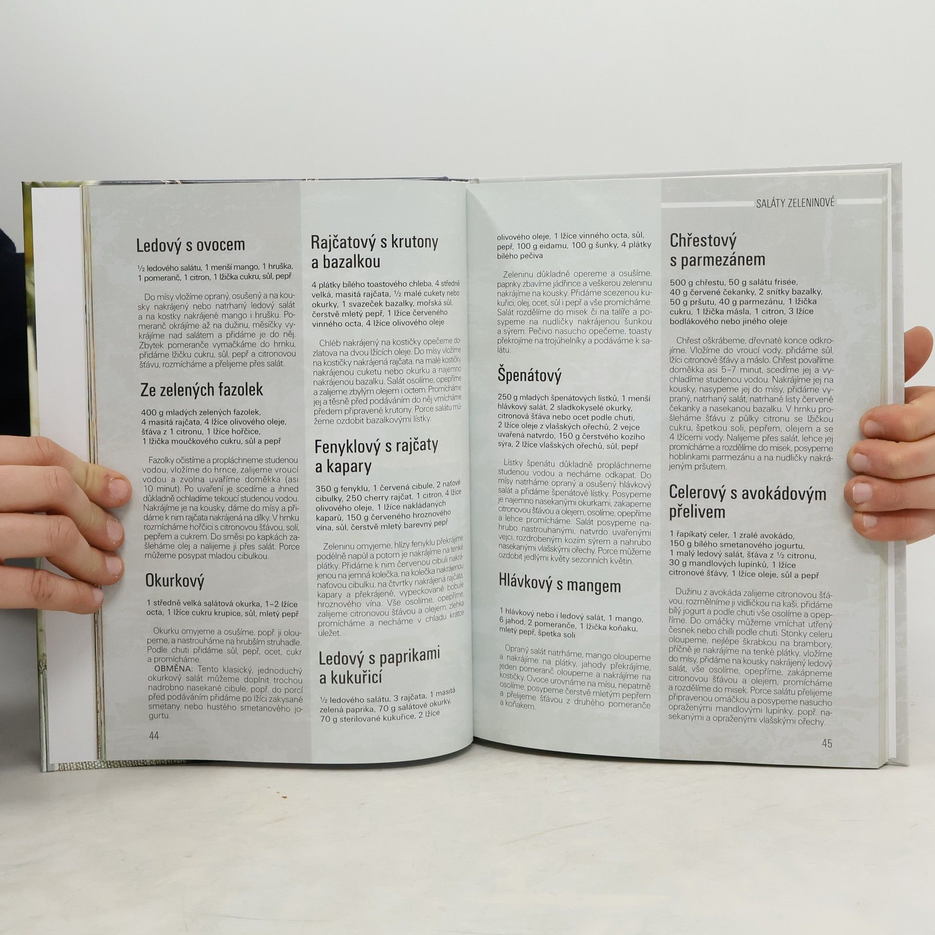 Fotografická kniha kuchařských receptů na přípravu salátů, zeleninových, bramborových, ovocných, masových, rybích, sýrových, vaječných, houbových, luštěninových, těstovinových, zálivek.