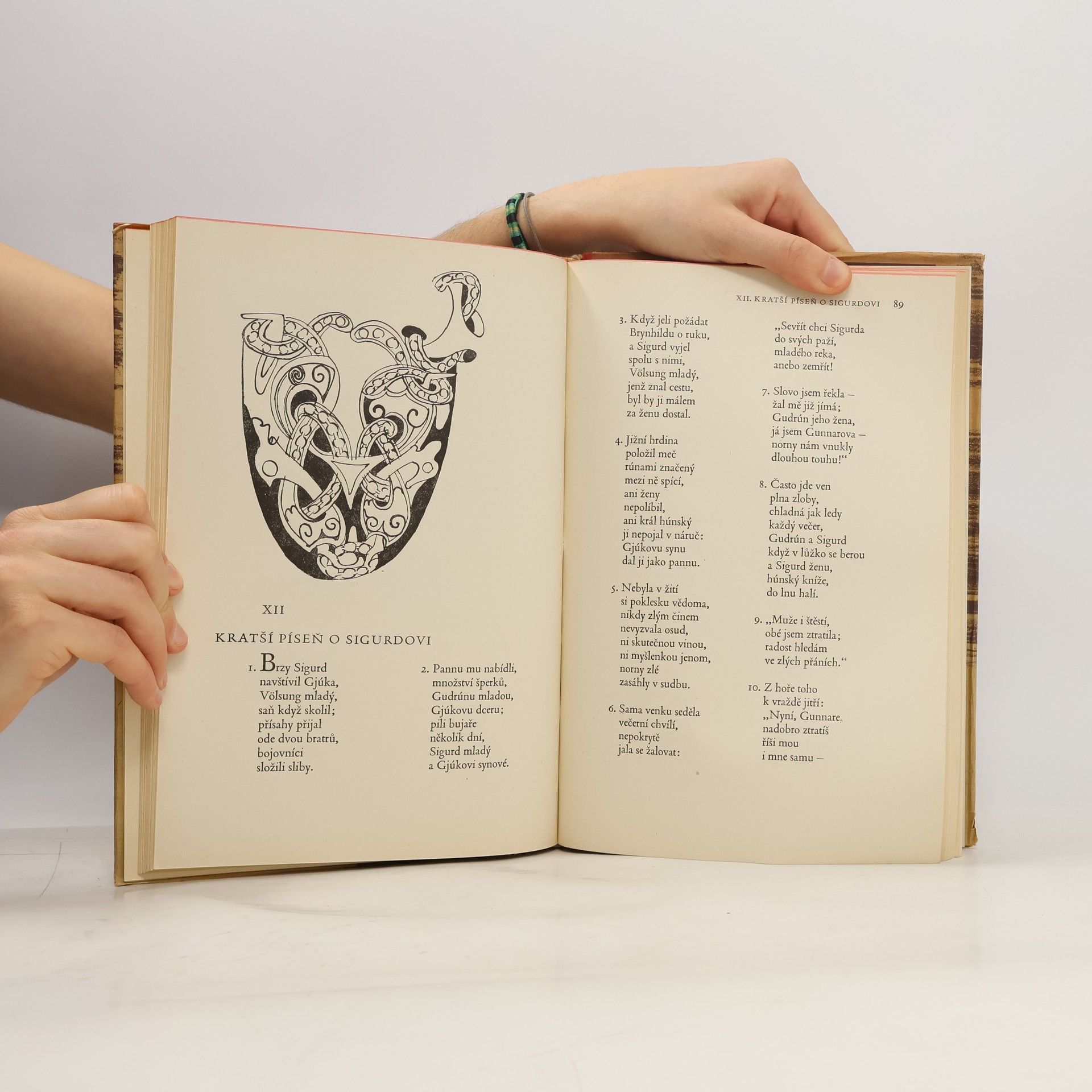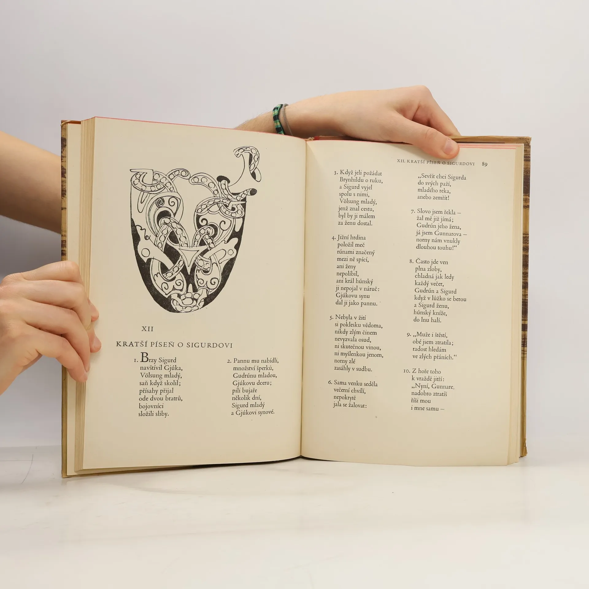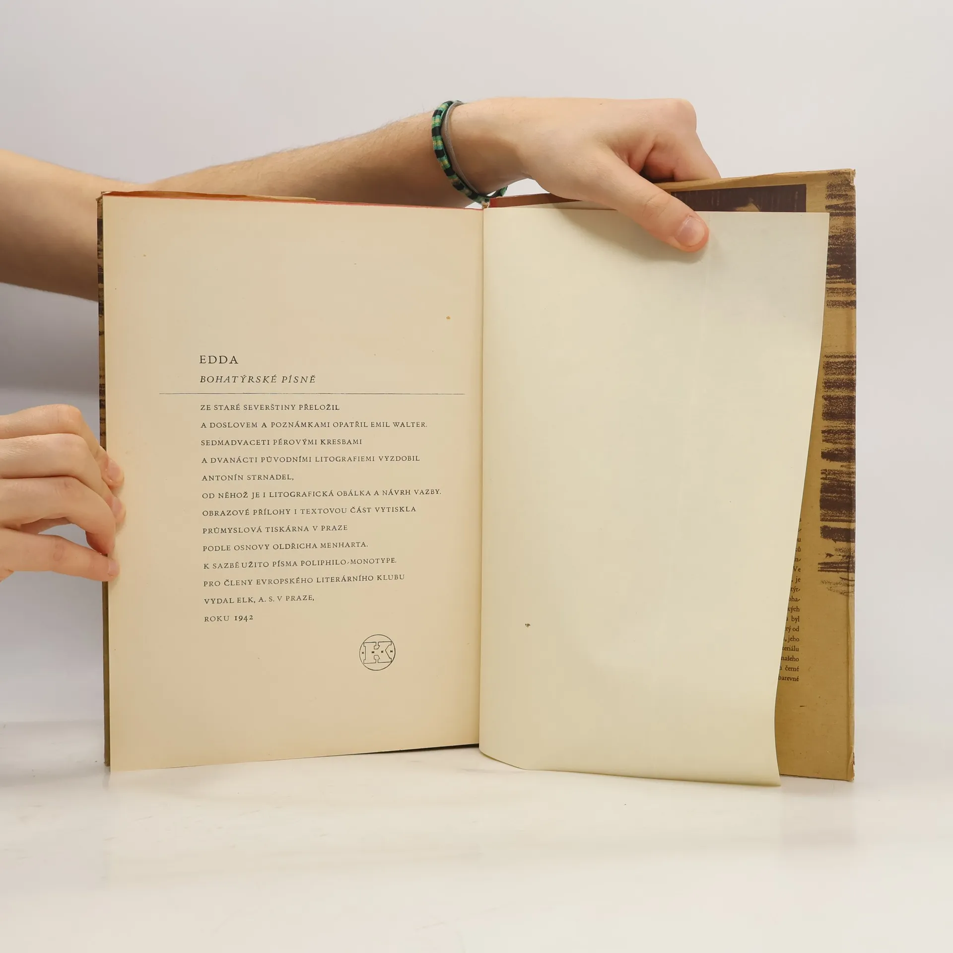 Ze staré severštiny přeložil a doslovem a poznámkami opatřil Emil Walter. Sedmadvaceti pérovými kresbami a dvanácti původními litografiemi vyzdobil Antonín Strnadel. Sbírka eddických islandských epických mytologických a hrdinských písní. Edda znamená islandsky prababička a toto slovo mohlobýt použito s významem prazáklad skaldské poesie. Obsah: - Píseň o Völundovi (Völundarkviða) - Píseň o Helgovi, synu Hjörvardovu (Helgakviða Hjörvarðssonar) - První píseň o Helgovi, Hundingobijci (Helgakviða Hundingsbana I) - Druhá píseň o Helgovi, Hundingobijci (Helgakviða Hundingsbana II) - O smrti Sinfjötlově - Grípova věštba (Grípisspá) - Píseň o Reginovi (Reginsmál) - Píseň o Fáfnovi (Fáfnismál) - Píseň o Sigrdrífě (Sigrdrífumál) - Zlomek písně o Sigurdovi (Brot af Sigurðarkviðu) - První píseň o Gudrúně (Guðrúnarkviða I) - Krátší píseň o Sigurdovi (Sigurðarkviða inn skamma) - Brynhildina cesta do pekel (Helreið Brynhildar) - Zánik Niflungů - Druhá neboli stará píseň o Gudrúně (Guðrúnarkviða II) - Třetí píseň o Gudrúně (Guðrúnarkviða III) - Oddrúnin nářek (Oddrúnargrátr) - Píseň o Atlovi (Atlakviða) - Grónská píseň o Atlovi (Atlamál in grænlensku) - Gudrúnino popouzení (Guðrúnarhvöt) - Píseň o Hamdirovi (Hamdismál) - Píseň o Grottu (Grottasöngr)
