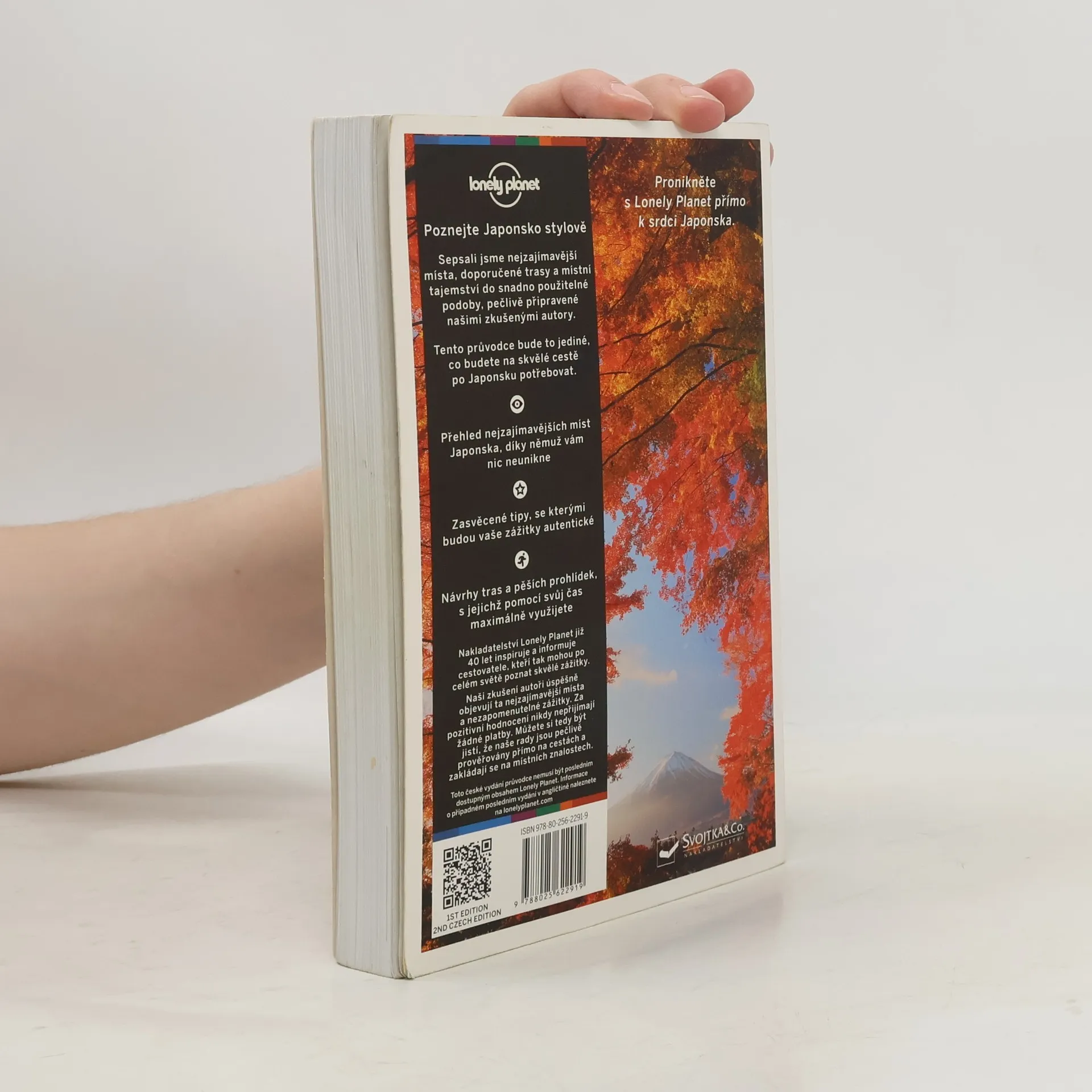 Japonsko je vskutku nadčasové. Je to místo, kde se starobylé tradice mísí s duchem moderní doby, jako by to byla ta nejpřirozenější věc na světě. Popsali jsme nejzajímavější místa, navrhované trasy a místní tajemství do snadno použitelné podoby, pečlivě připravené našimi zkušenými autory. Tento průvodce bude to jediné, co budete potřebovat na nezapomenutelnou cestu po Japonsku. Nakladatelství Lonely Planet již 40 let inspiruje a informuje cestovatele, kteří tak mohou po celém světě poznat skvělé zážitky. Naši zkušení autoři úspěšně objevují ta nejzajímavější místa a vzrušující zážitky. Za pozitivní hodnocení nikdy nepřijímají žádné platby. Můžete si tedy být jistí, že naše rady jsou pečlivě prověřovány přímo na cestě a odrážejí místní znalosti. – Zasvěcené tipy, se kterými budou vaše zážitky autentické – Návrhy tras a pěších prohlídek, s jejichž pomocí svůj čas maximálně využijete – Jeďte přímo na ta nejzajímavější místa a poznejte ty nejlepší zážitky, pečlivě vybrané našimi zkušenými autory – Poznejte zemi ještě před cestou – naše okouzlující fotografie vás vtáhnou do kultury Japonska – Cestujte snadno s našimi skládacími mapami a dopravním tipy Říkáme to tak, jak to je Našim informacím můžete věřit, protože autoři Lonely Planet osobně navštěvují místa, o nichž píšou. Nepřijímáme žádné protislužby za pozitivní hodnocení, a můžete se proto spolehnout na to, že jsme absolutně objektivní.