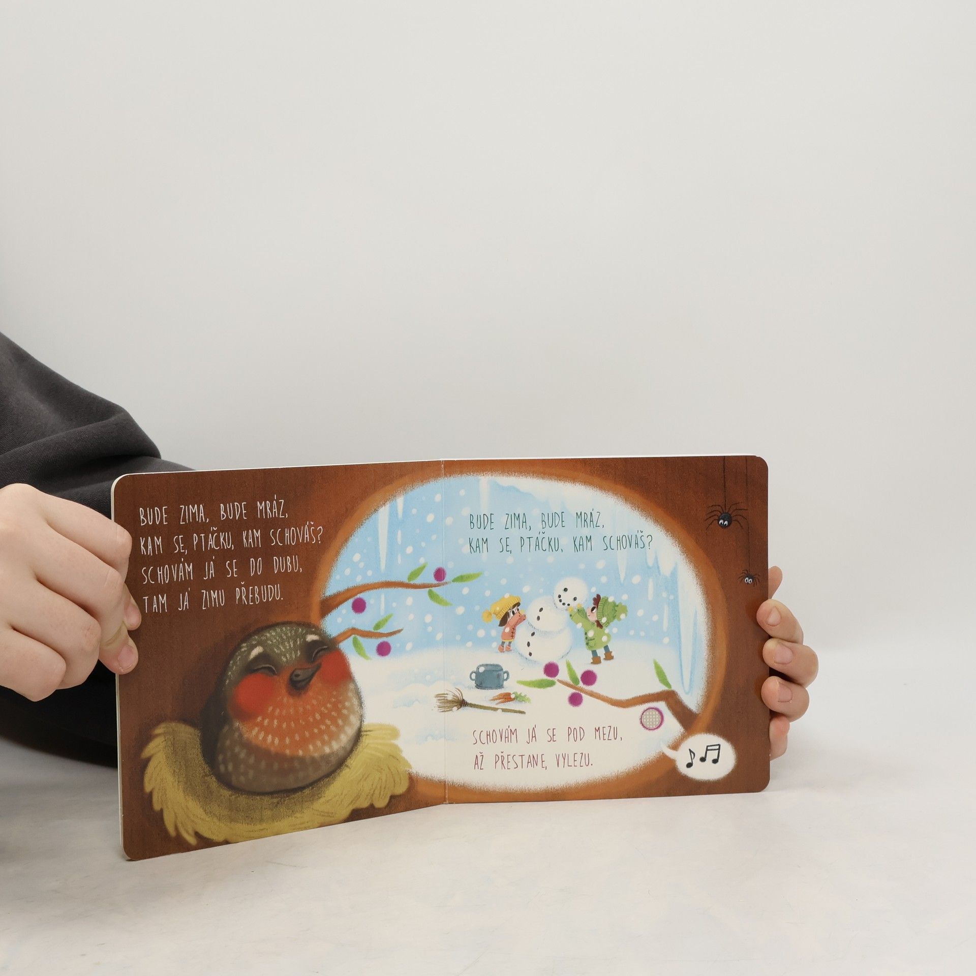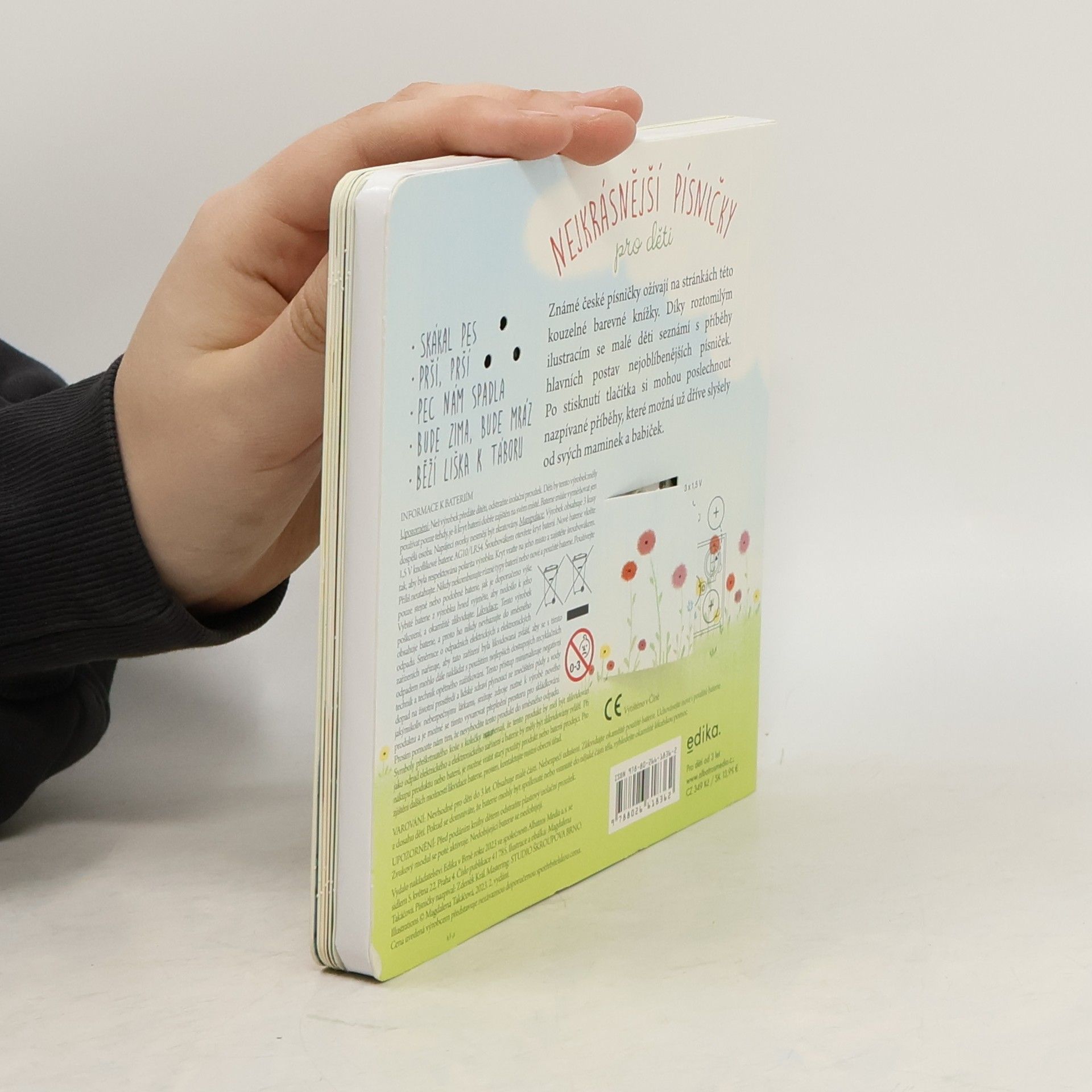 Známé české písničky ožívají na stránkách této kouzelné barevné knížky. Díky roztomilým ilustracím se malé děti seznámí s příběhy hlavních postav nejoblíbenějších písniček. Po stisknutí tlačítka si mohou poslechnout nazpívané příběhy (první sloka), které možná už dříve slyšely od svých maminek a babiček.