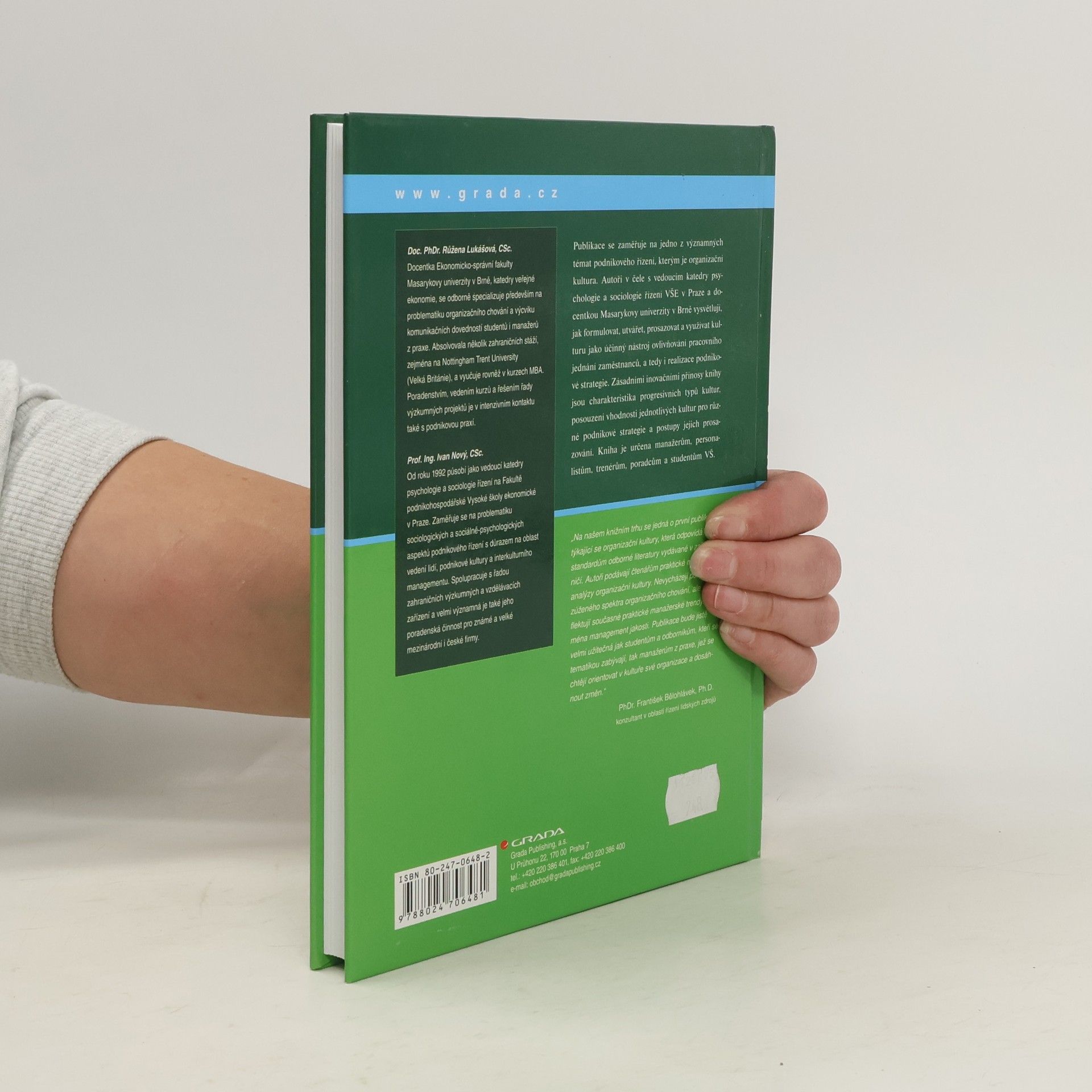 Publikace se zaměřuje na jedno z významných témat podnikového řízení, kterým je podniková/organizační kultura. Autoři v čele s vedoucím katedry psychologie a sociologie řízení Vysoké školy ekonomické v Praze vysvětlují, jak formulovat, utvářet, prosazovat a využívat kulturu jako účinný nástroj ovlivňování pracovního jednání zaměstnanců, a tedy i realizace podnikové strategie. Zásadními inovačními přínosy knihy jsou charakteristika progresivních typů kultur, posouzení vhodnosti jednotlivých kultur pro různé podnikové strategie a postupy jejich prosazování. Kniha je určena širokému spektru manažerů, personalistů, trenérů, poradců a studentů vysokých škol.... celý text