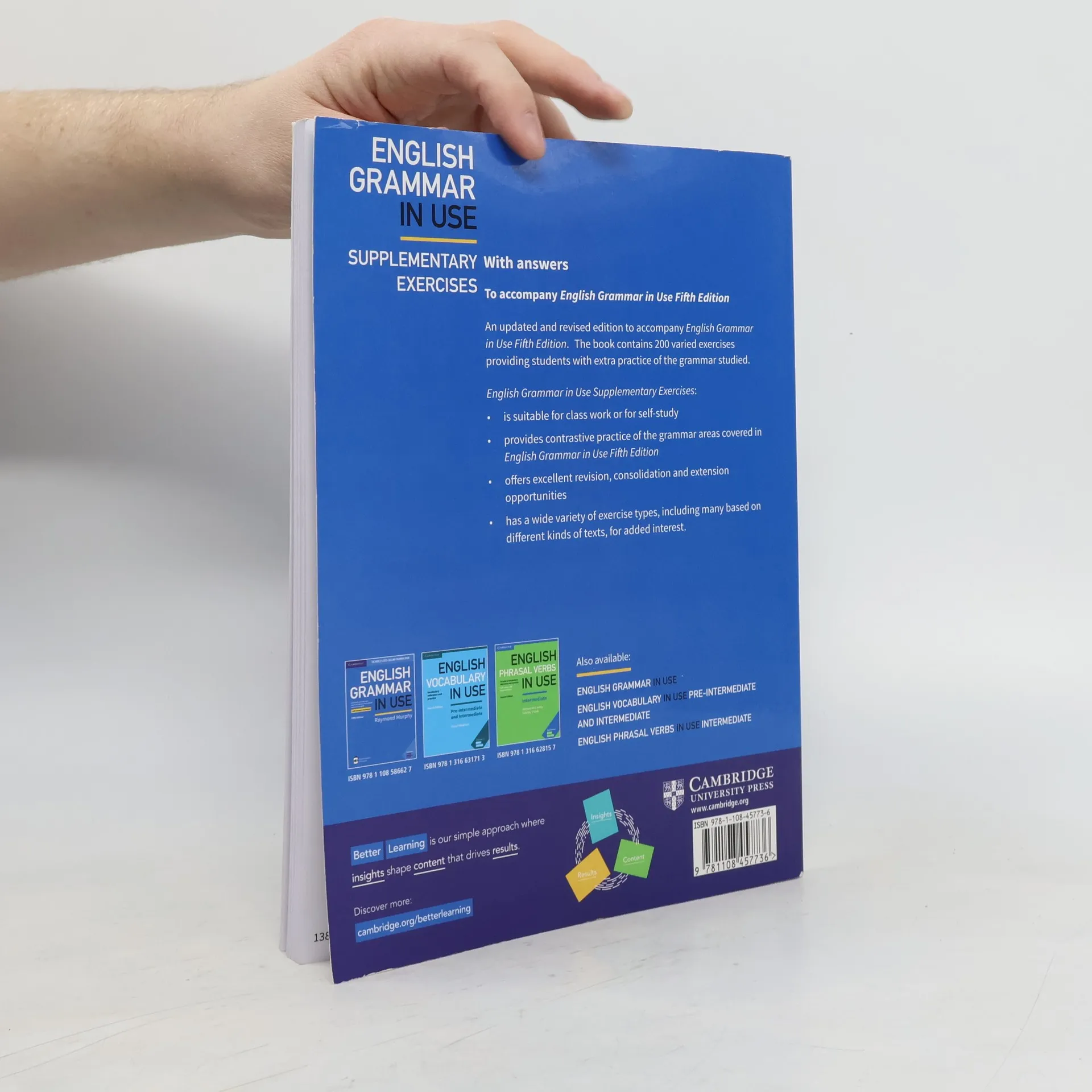 This new edition has been updated and revised to accompany the Fifth edition of English Grammar in Use, the first choice for intermediate (B1-B2) learners. This book contains 200 varied exercises to provide learners with extra practice of the grammar they have studied.
