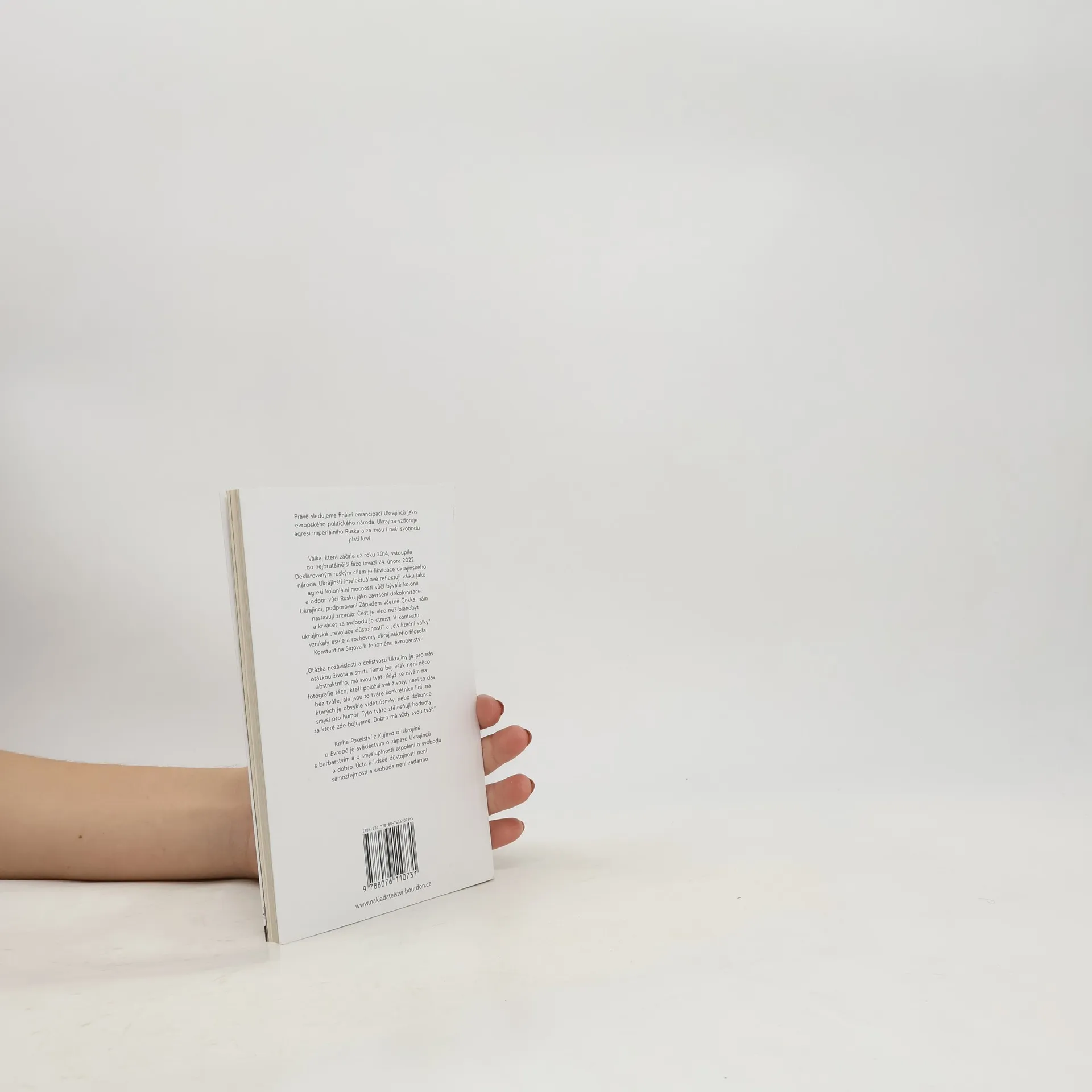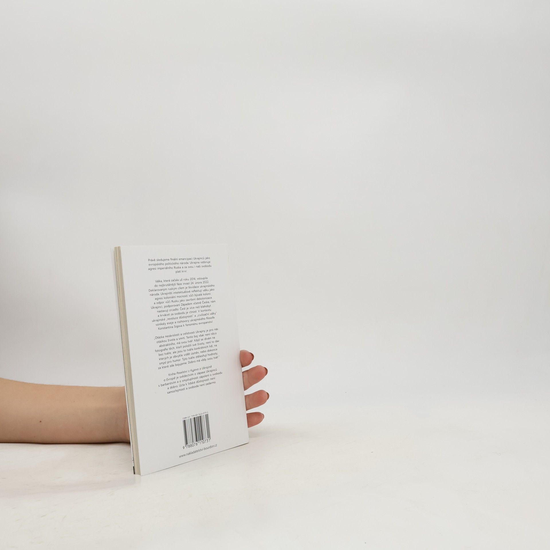 Právě sledujeme finální emancipaci Ukrajinců jako evropského politického národa. Ukrajina vzdoruje agresi imperiálního Ruska a za svou i naši svobodu platí krví. Válka, která začala už roku 2014, vstoupila do nejbrutálnější fáze invazí 24. února 2022. Deklarovaným ruským cílem je likvidace ukrajinského národa. Ukrajinští intelektuálové reflektují válku jako agresi koloniální mocnosti vůči bývalé kolonii a odpor vůči Rusku jako završení dekolonizace. Ukrajinci, podporovaní Západem včetně Česka, nám nastavují zrcadlo: Čest je více než blahobyt a krvácet za svobodu je ctnost. V kontextu ukrajinské „revoluce důstojnosti“ a „civilizační války“ vznikaly eseje a rozhovory ukrajinského filosofa Konstantina Sigova k fenoménu evropanství: „Otázka nezávislosti a celistvosti Ukrajiny je pro nás otázkou života a smrti. Tento boj však není něco abstraktního, má svou tvář. Když se dívám na fotografie těch, kteří položili své životy, není to dav bez tváře, ale jsou to tváře konkrétních lidí, na kterých je obvykle vidět úsměv, nebo dokonce smysl pro humor. Tyto tváře ztělesňují hodnoty, za které zde bojujeme. Dobro má vždy svou tvář.“ Kniha Poselství z Kyjeva o Ukrajině a Evropě je svědectvím o zápase Ukrajinců s barbarstvím a o smysluplnosti zápolení o svobodu a dobro. Úcta k lidské důstojnosti není samozřejmostí a svoboda není zadarmo.